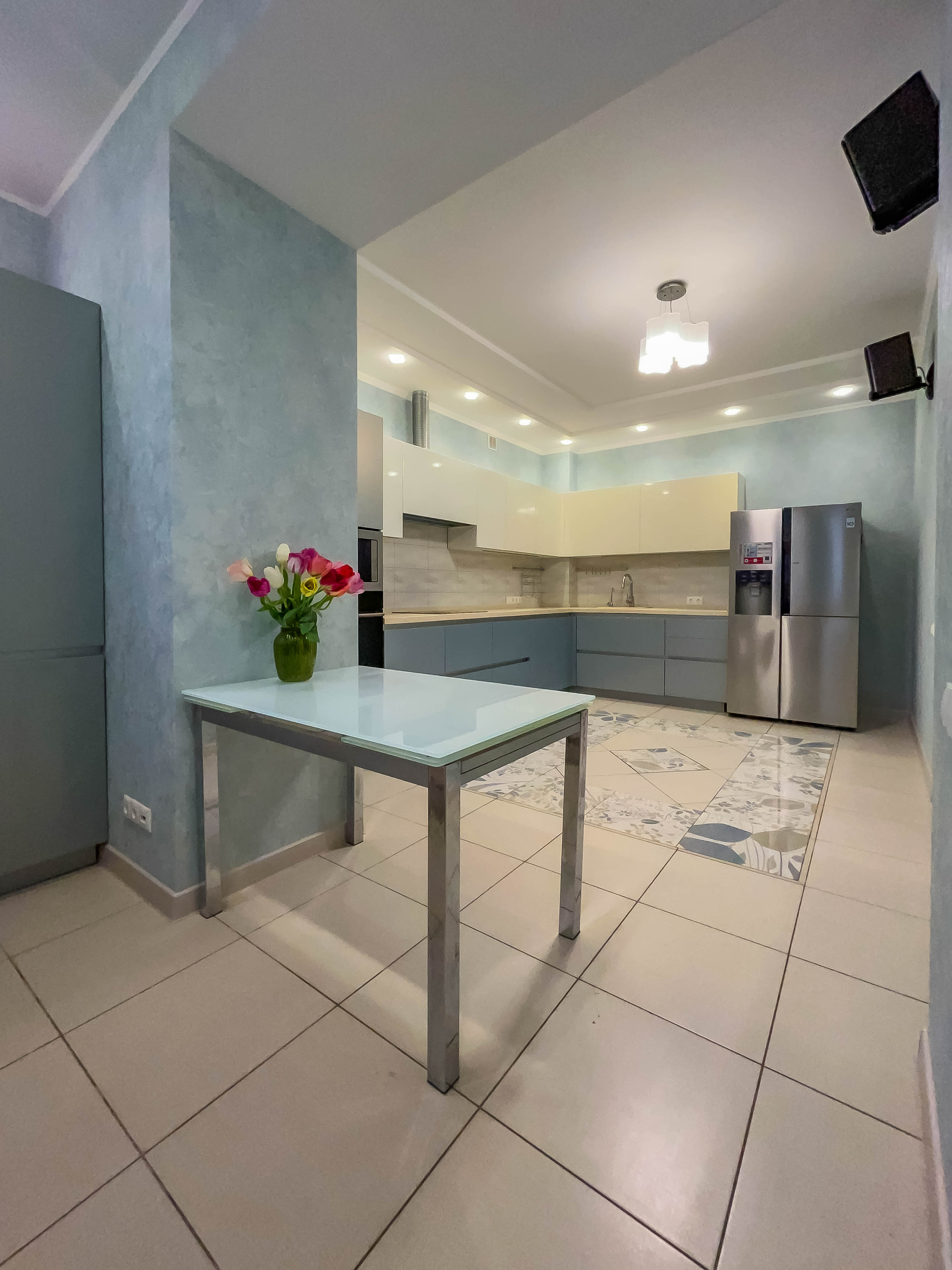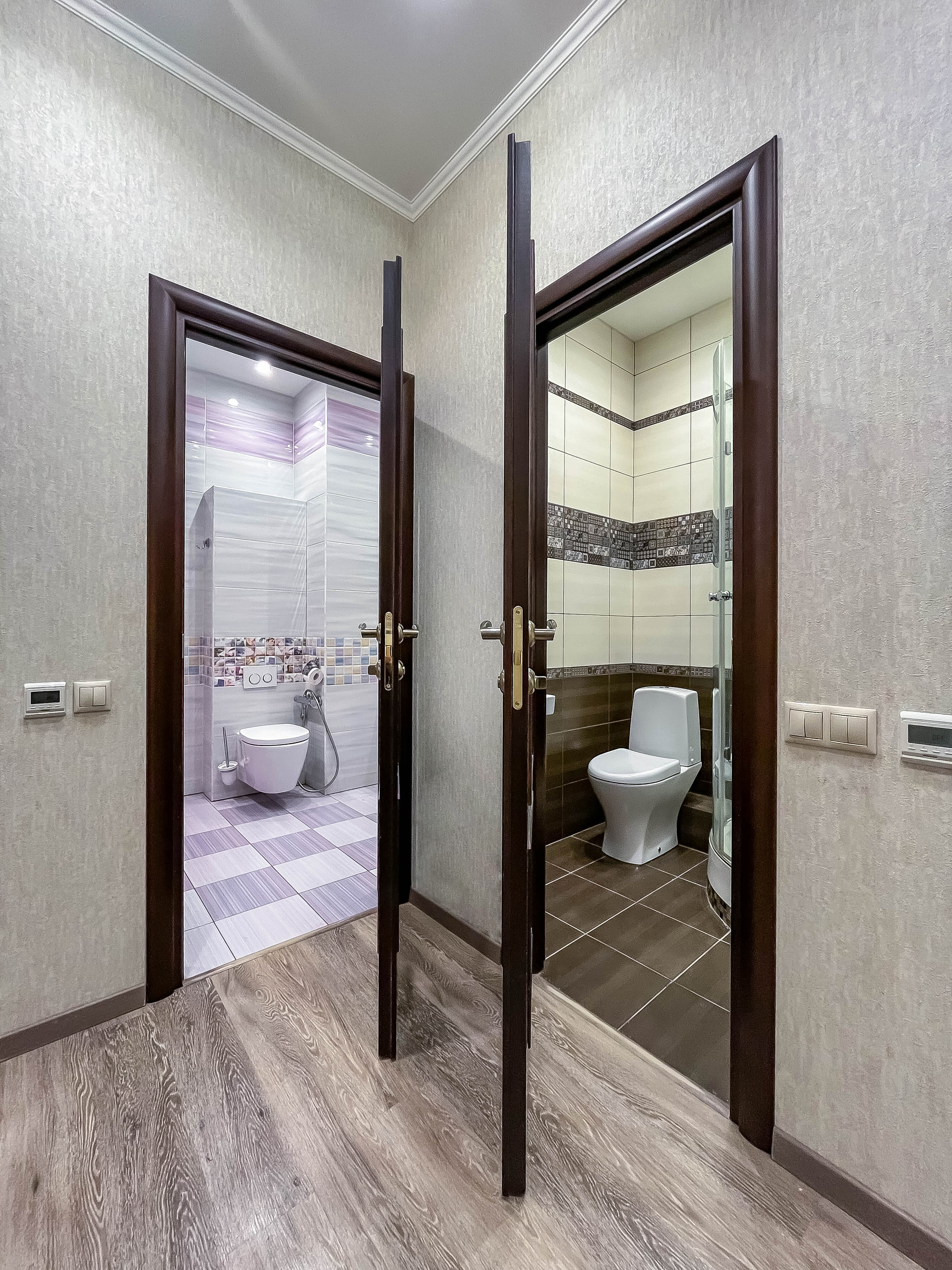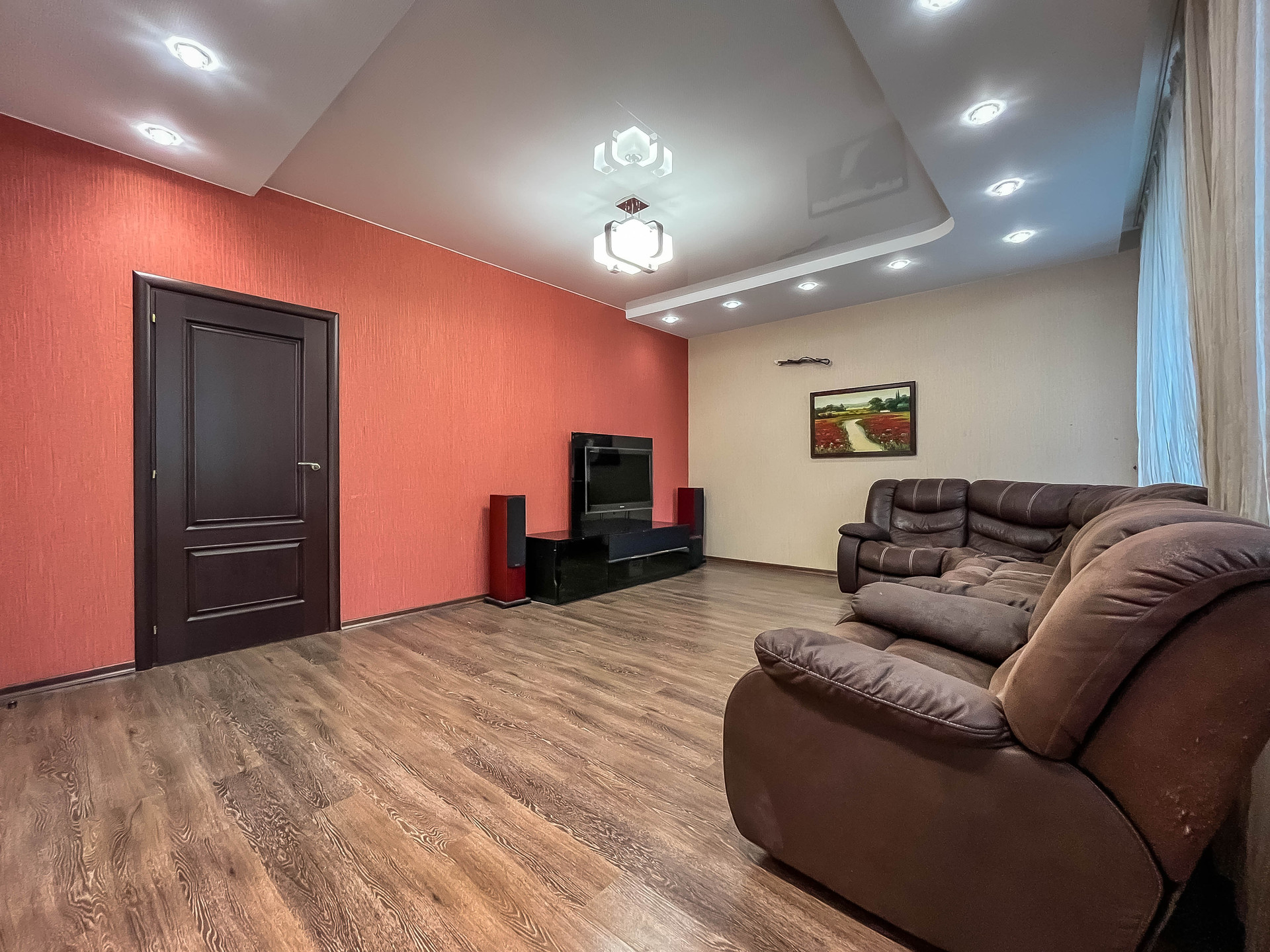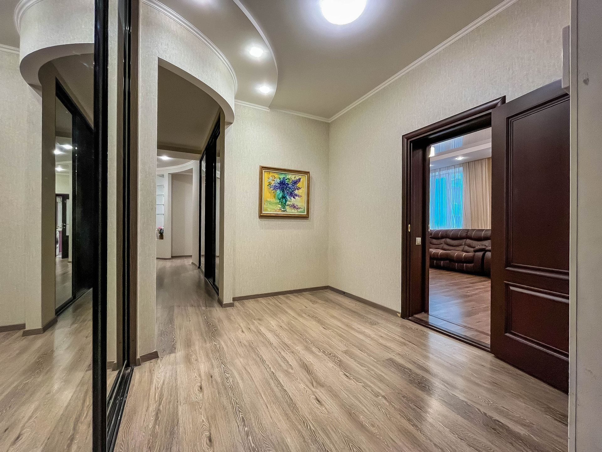 ✓ Полы ламинат (+пробка 3мм) или премиум плитка. Потолки многоуровневые ГКЛ или натяжные.