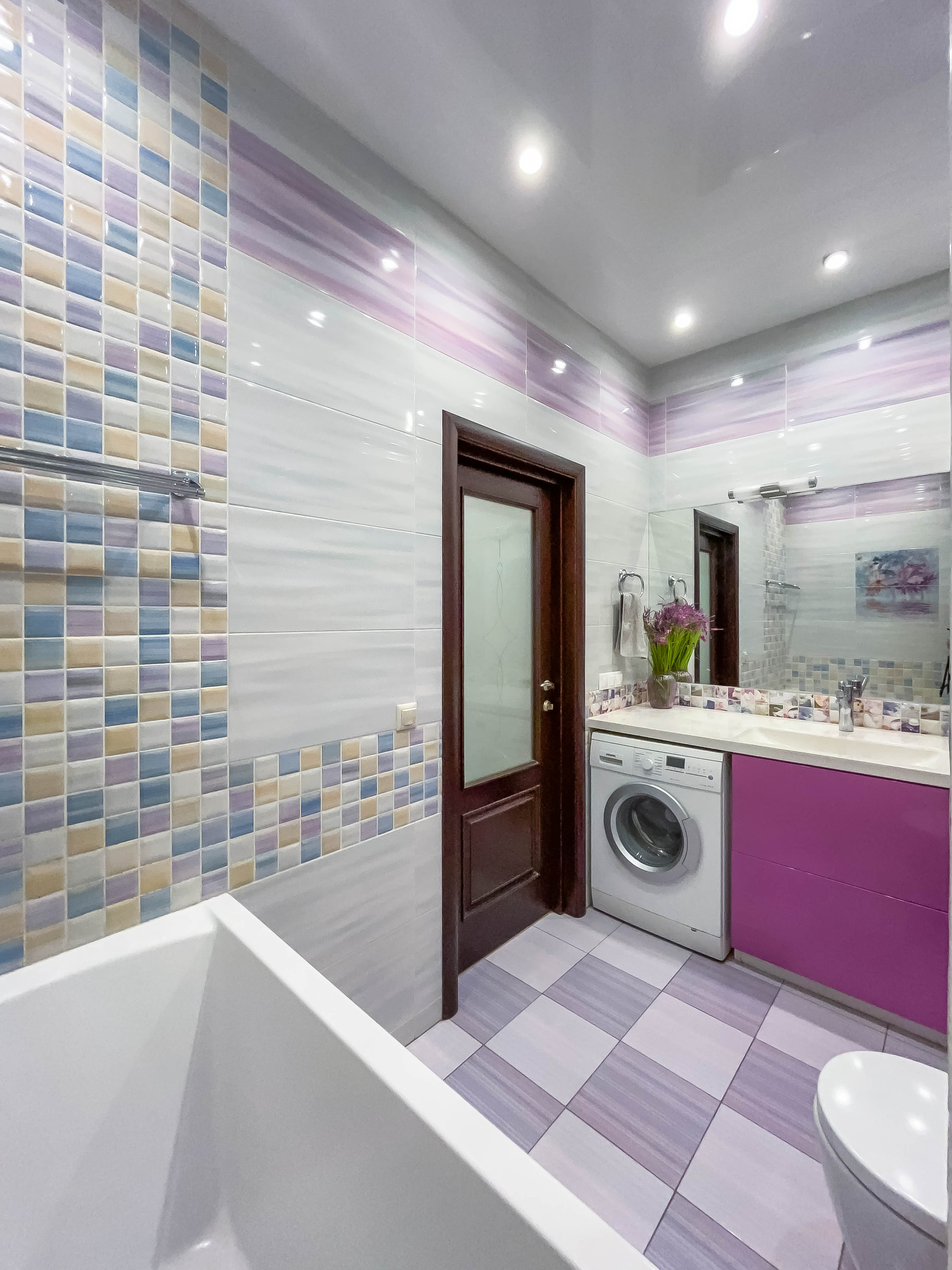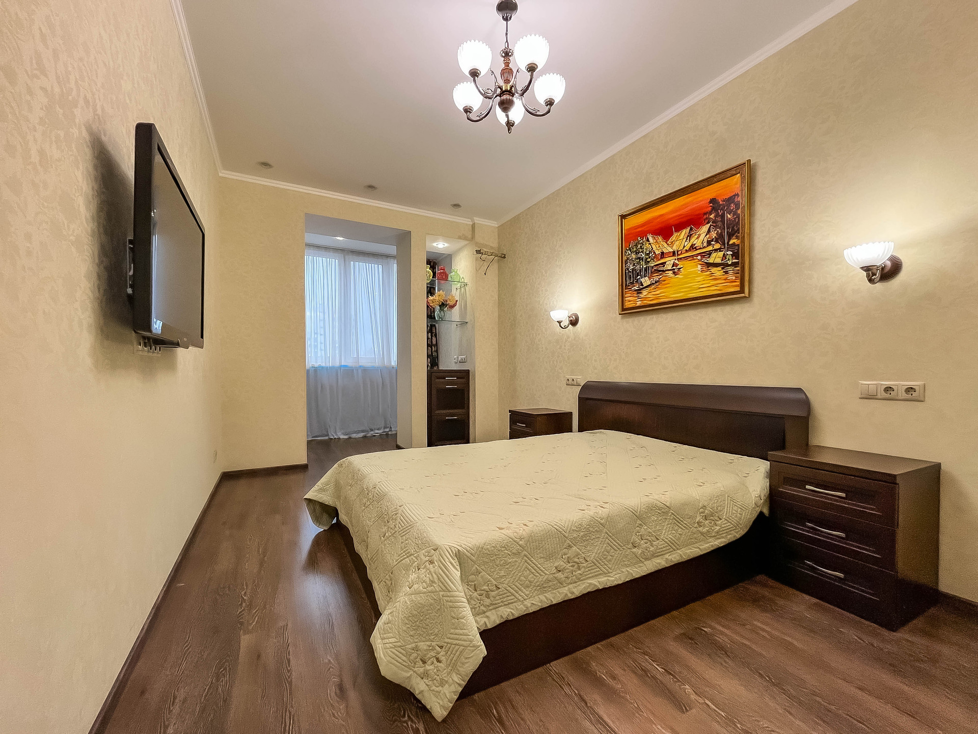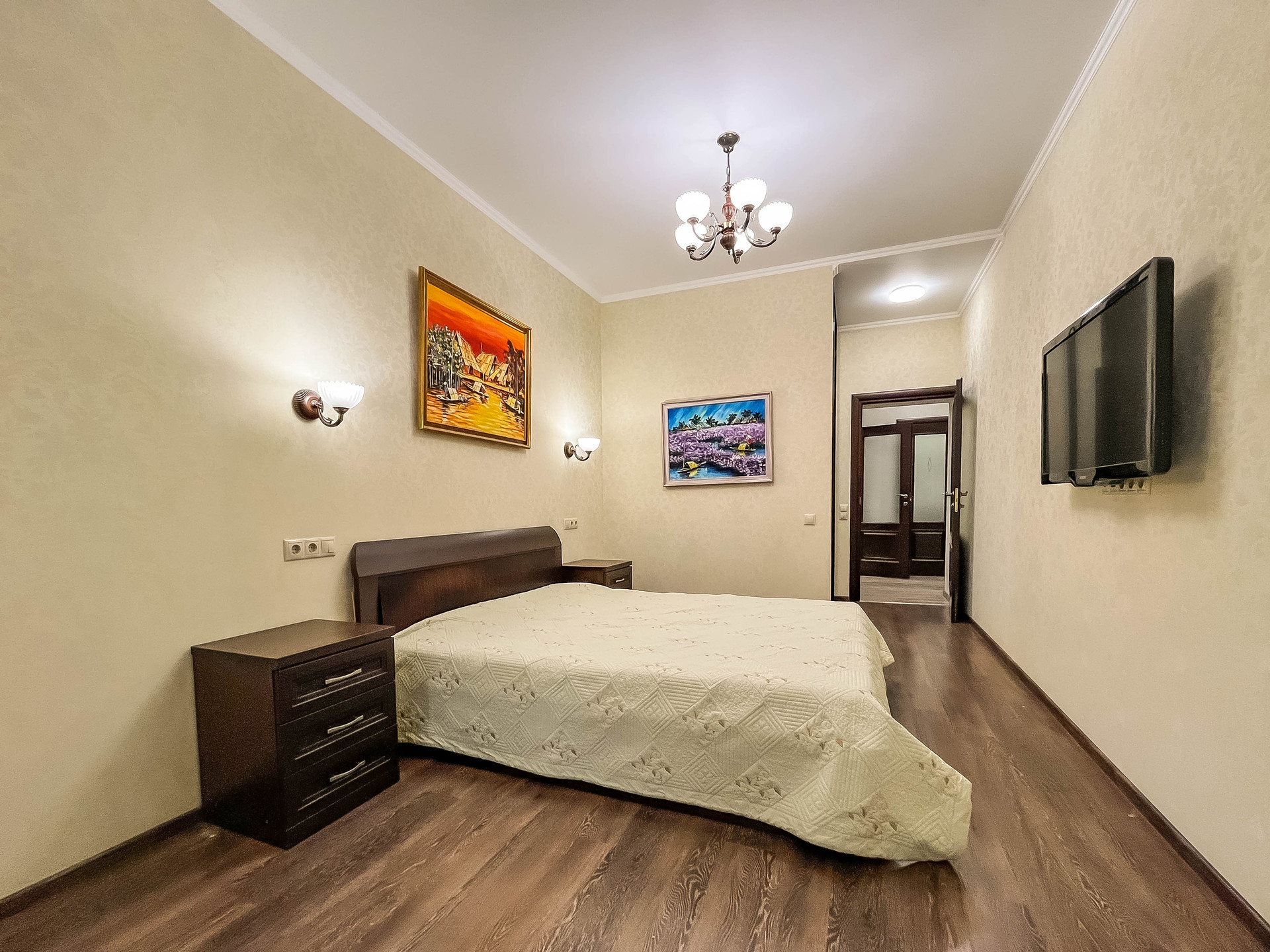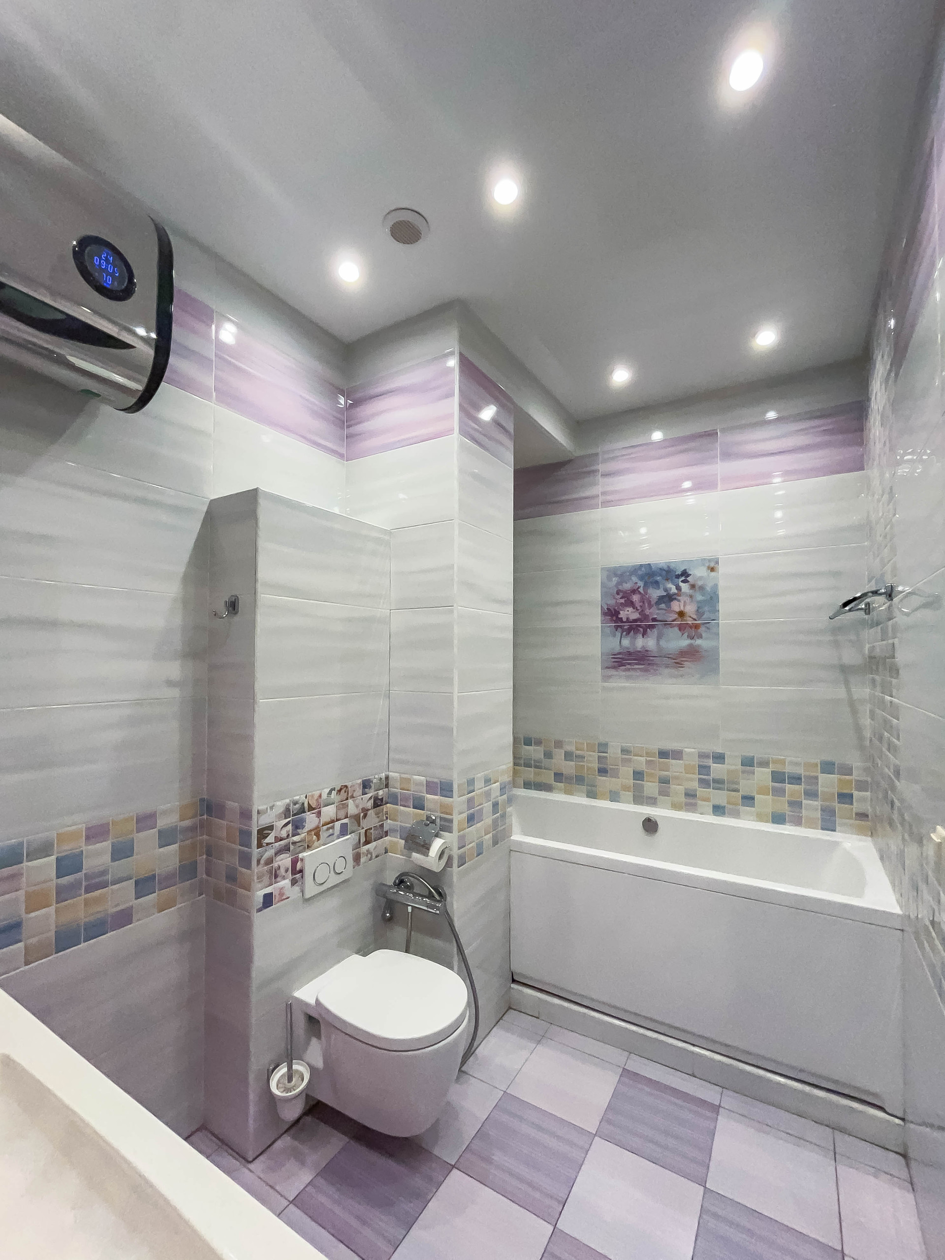 ✓ Полы ламинат (+пробка 3мм) или премиум плитка. Потолки многоуровневые ГКЛ или натяжные.