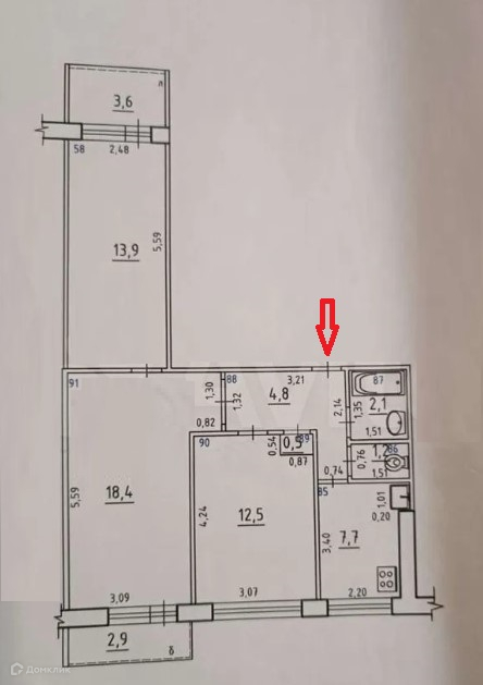 Балкон, лоджия 1 балкон