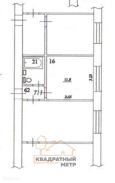 Жилая площадь квартиры: 32,3 кв.м