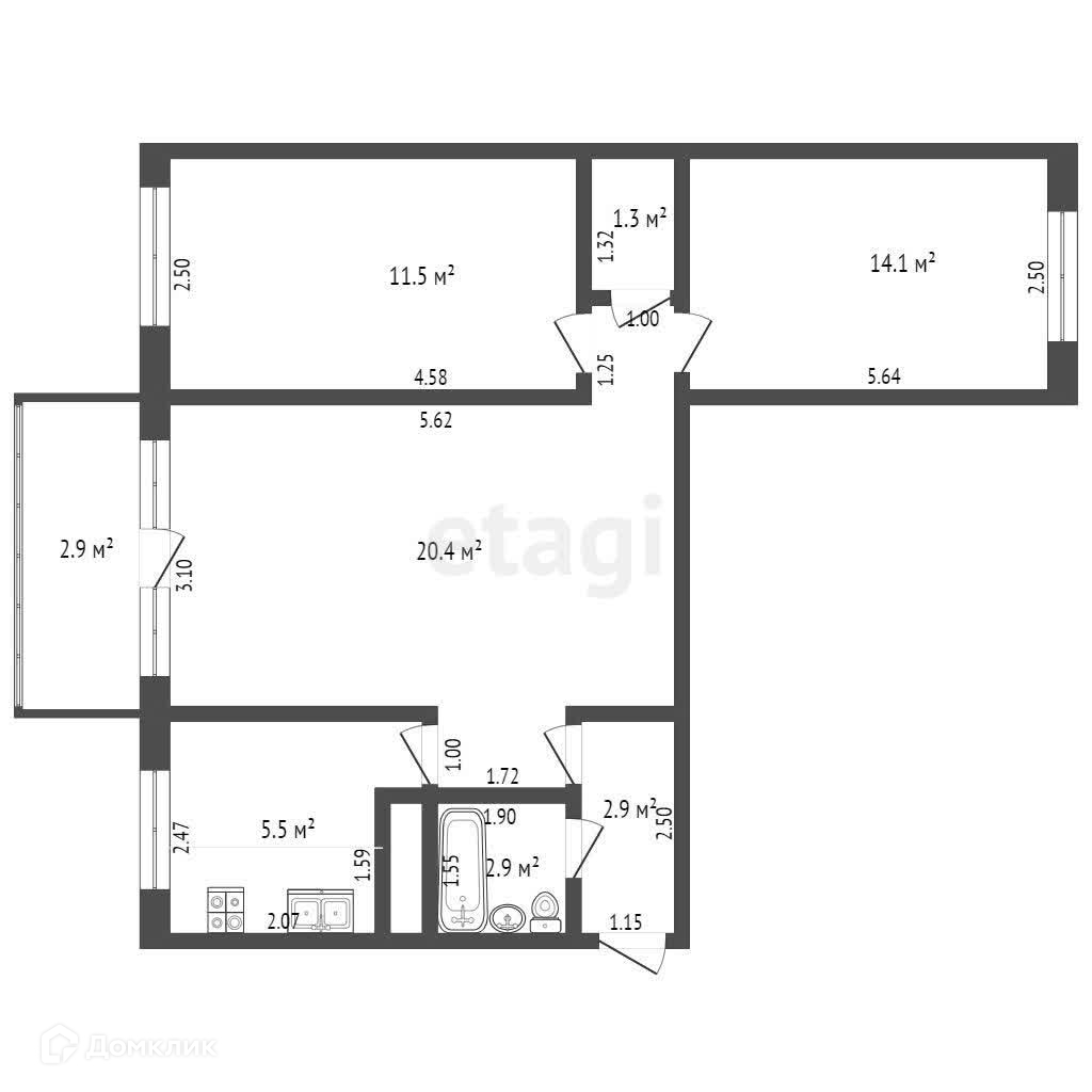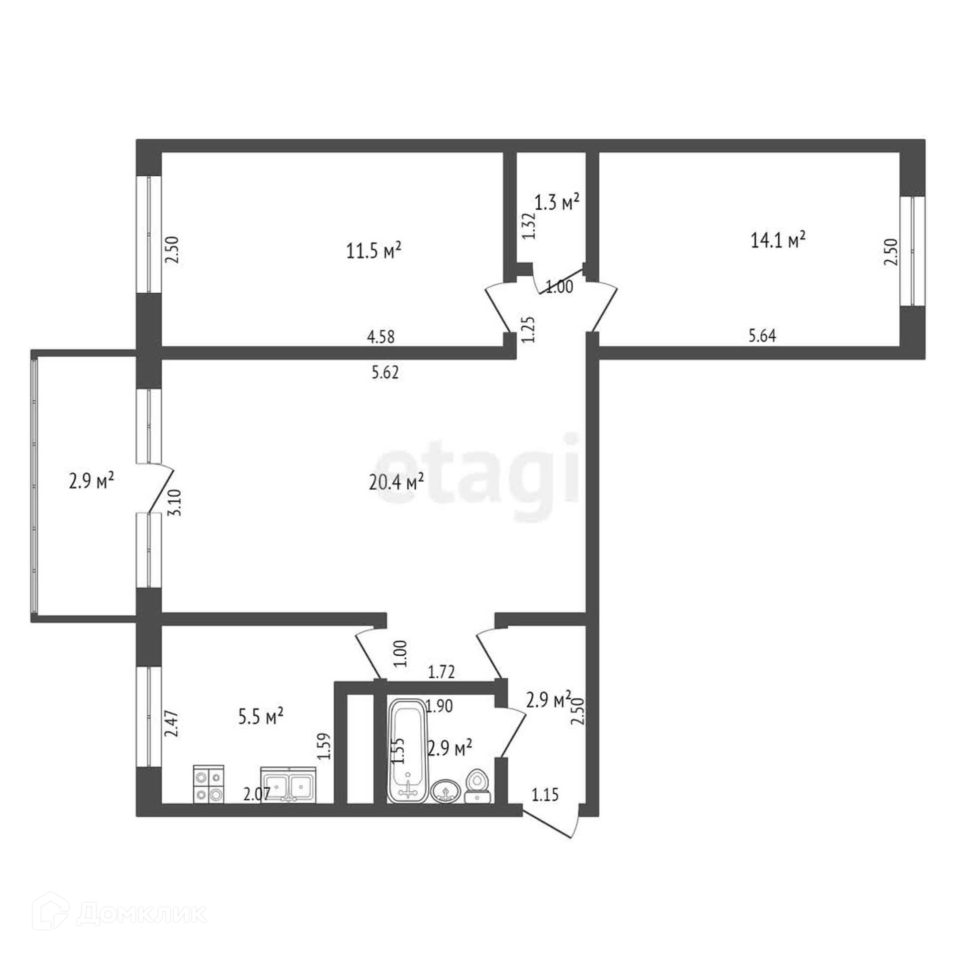 Общая площадь 58.6 м2