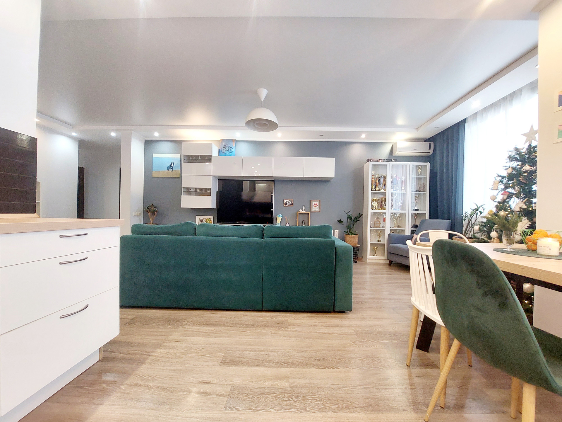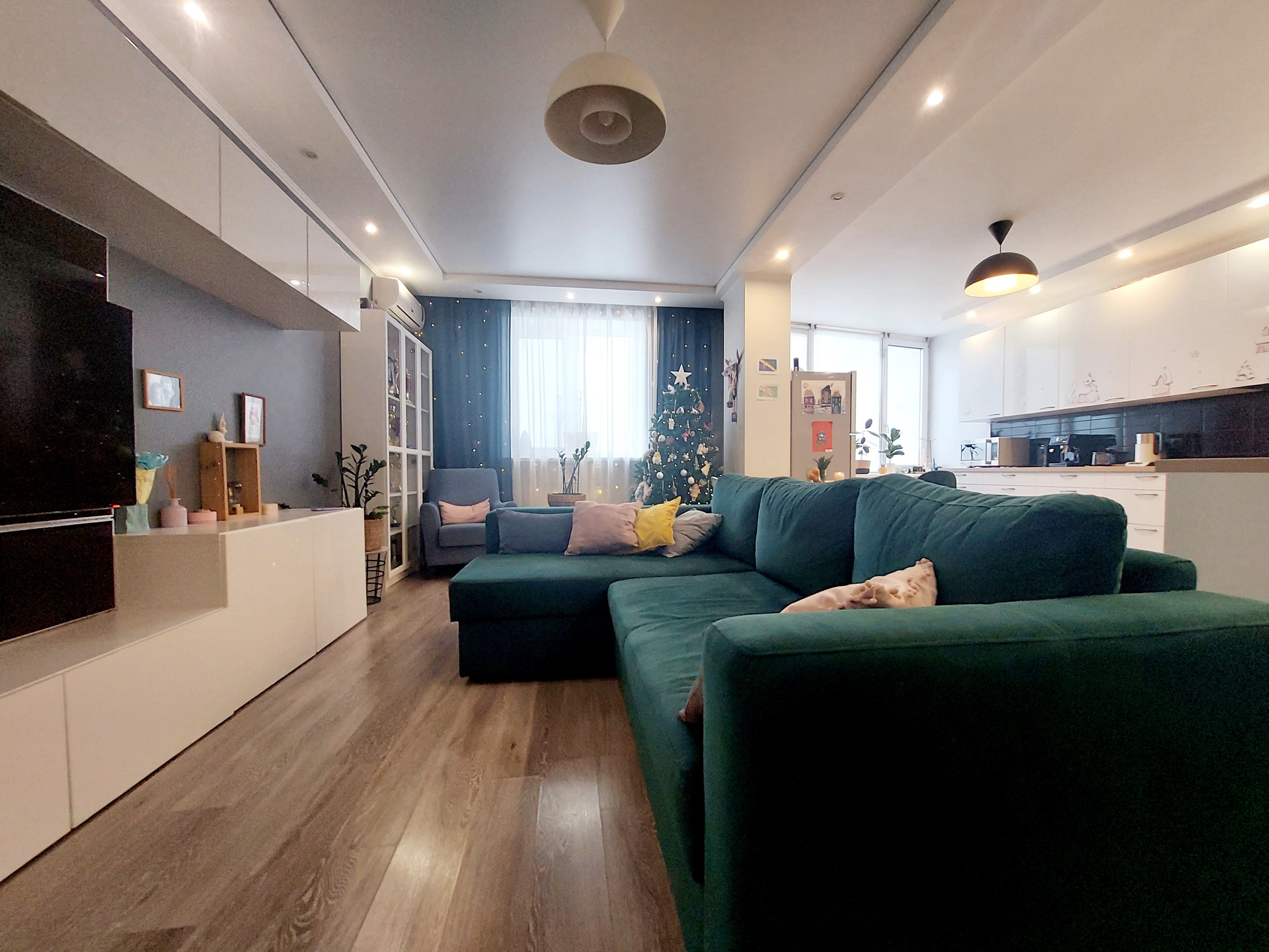Потолки во всех комнатах с продуманной системой регулирования яркости света.
