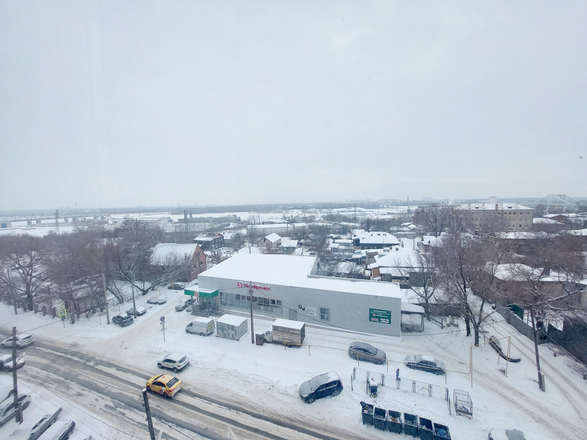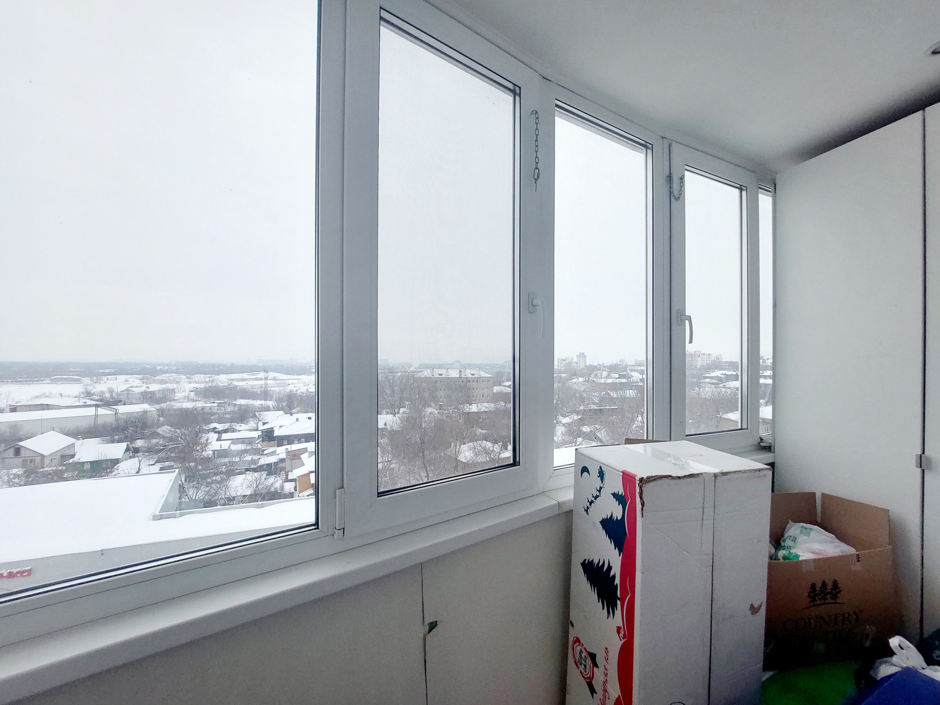 Окна квартиры выходят на две стороны. Окна кухни-гостиной и одной из комнат выходят во двор. Окна второй комнаты выходят на реку Самарку и Фрунзенский мост.
