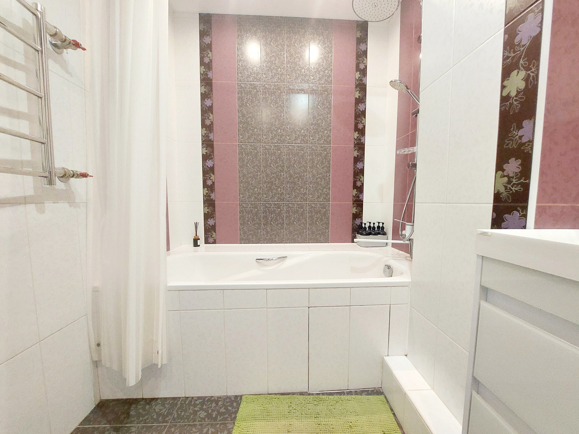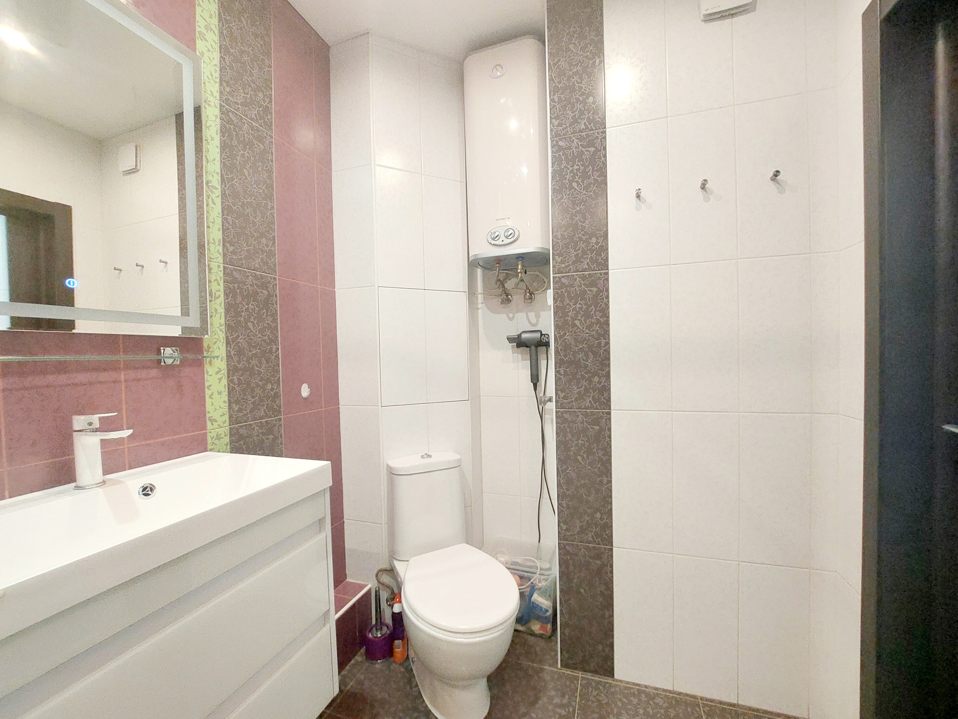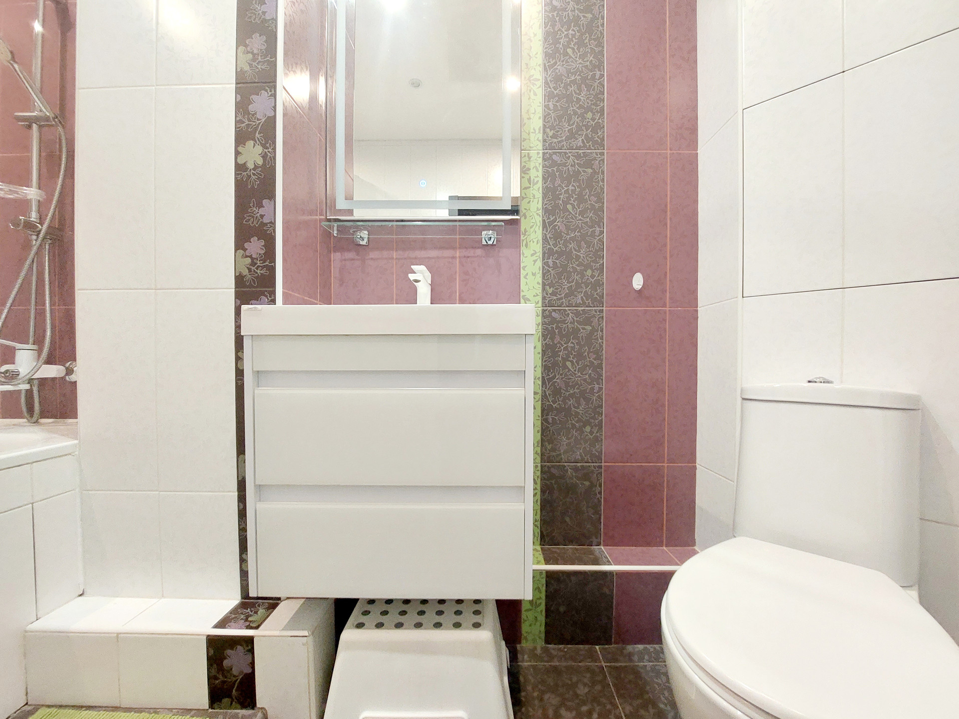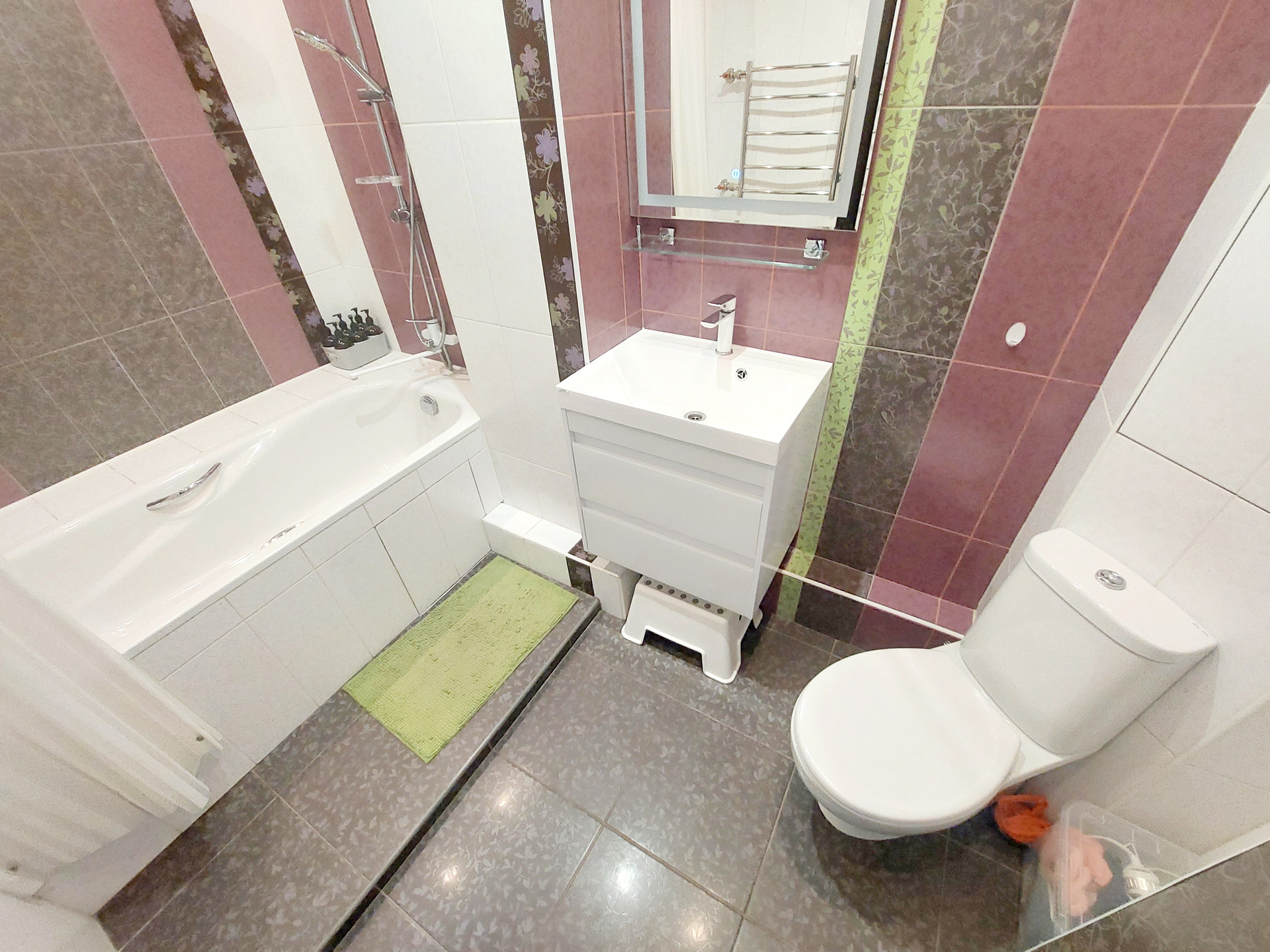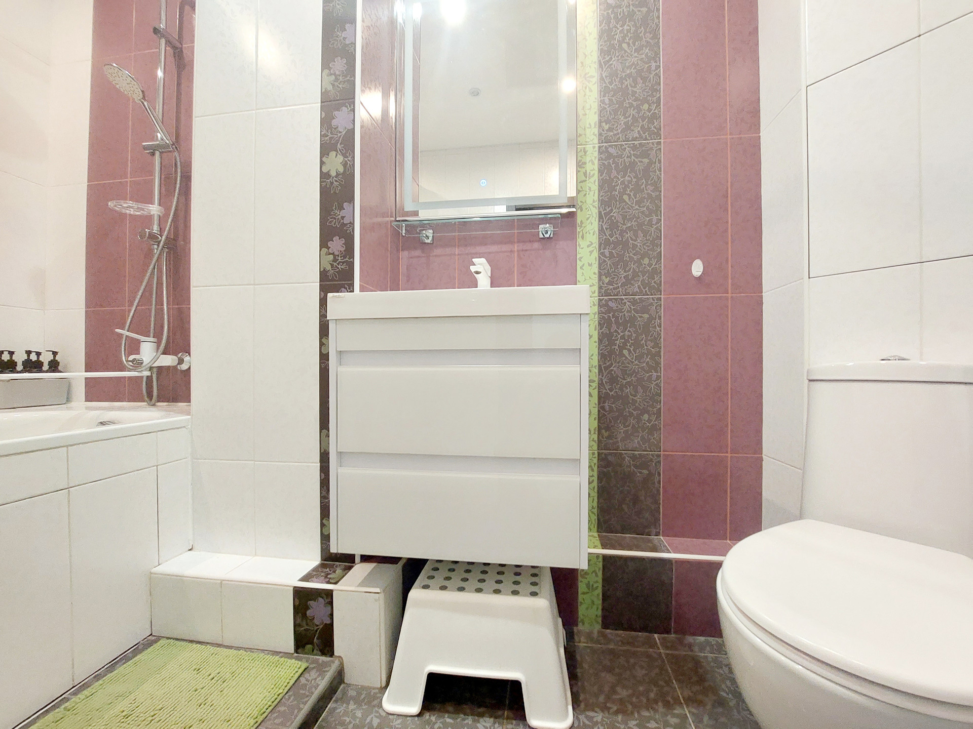 В ванной комнате – кафель на полах и стенах.