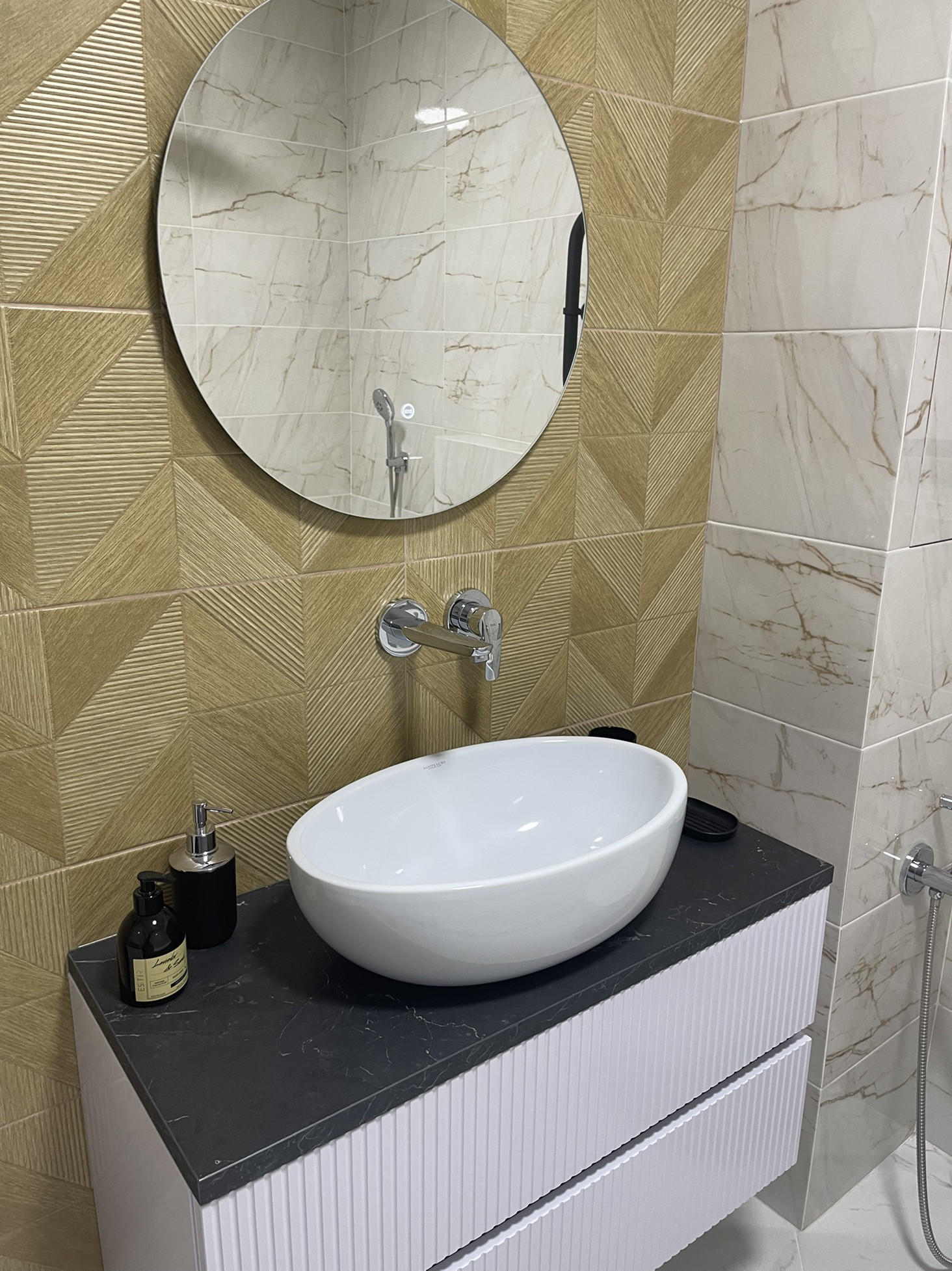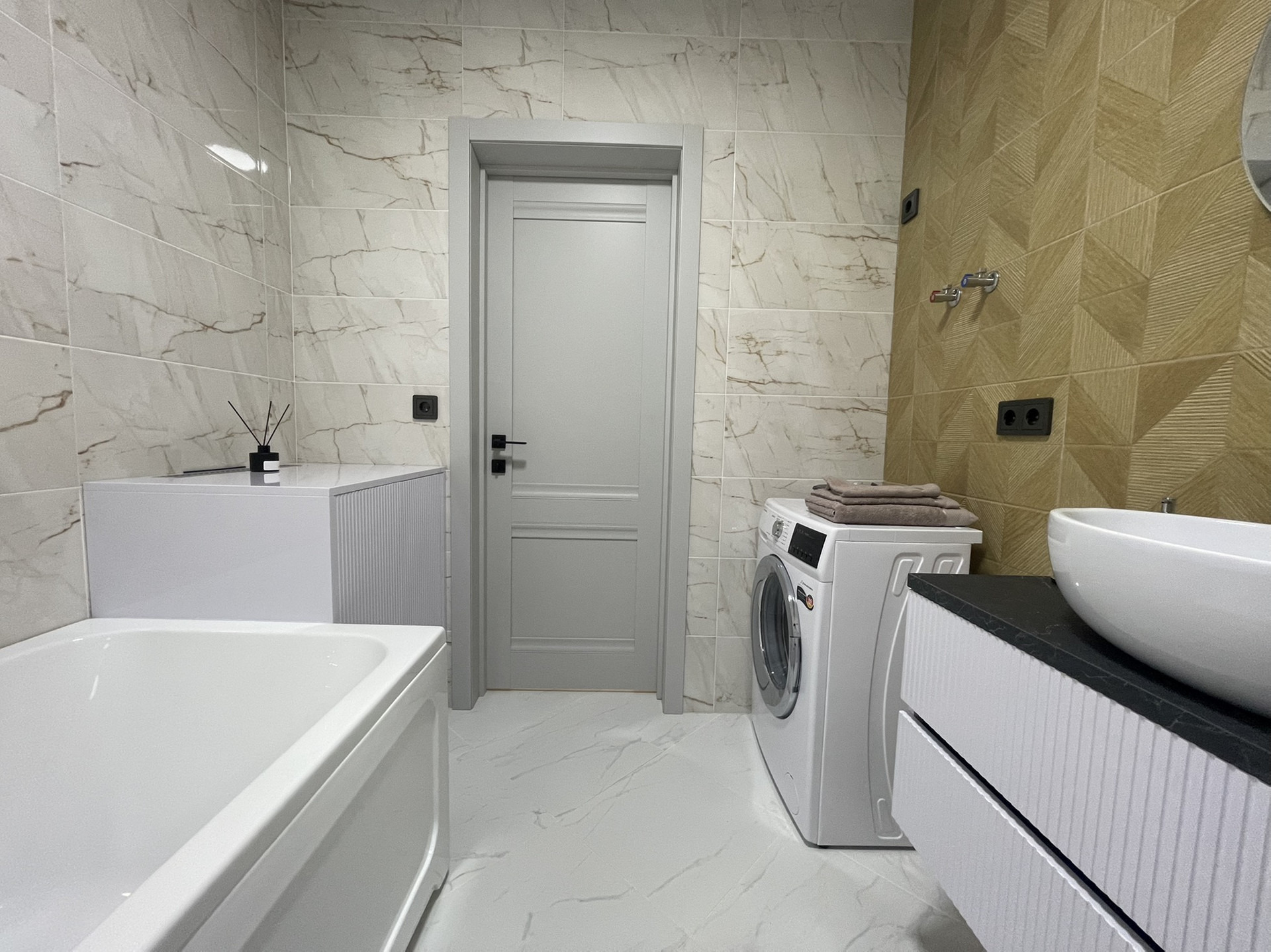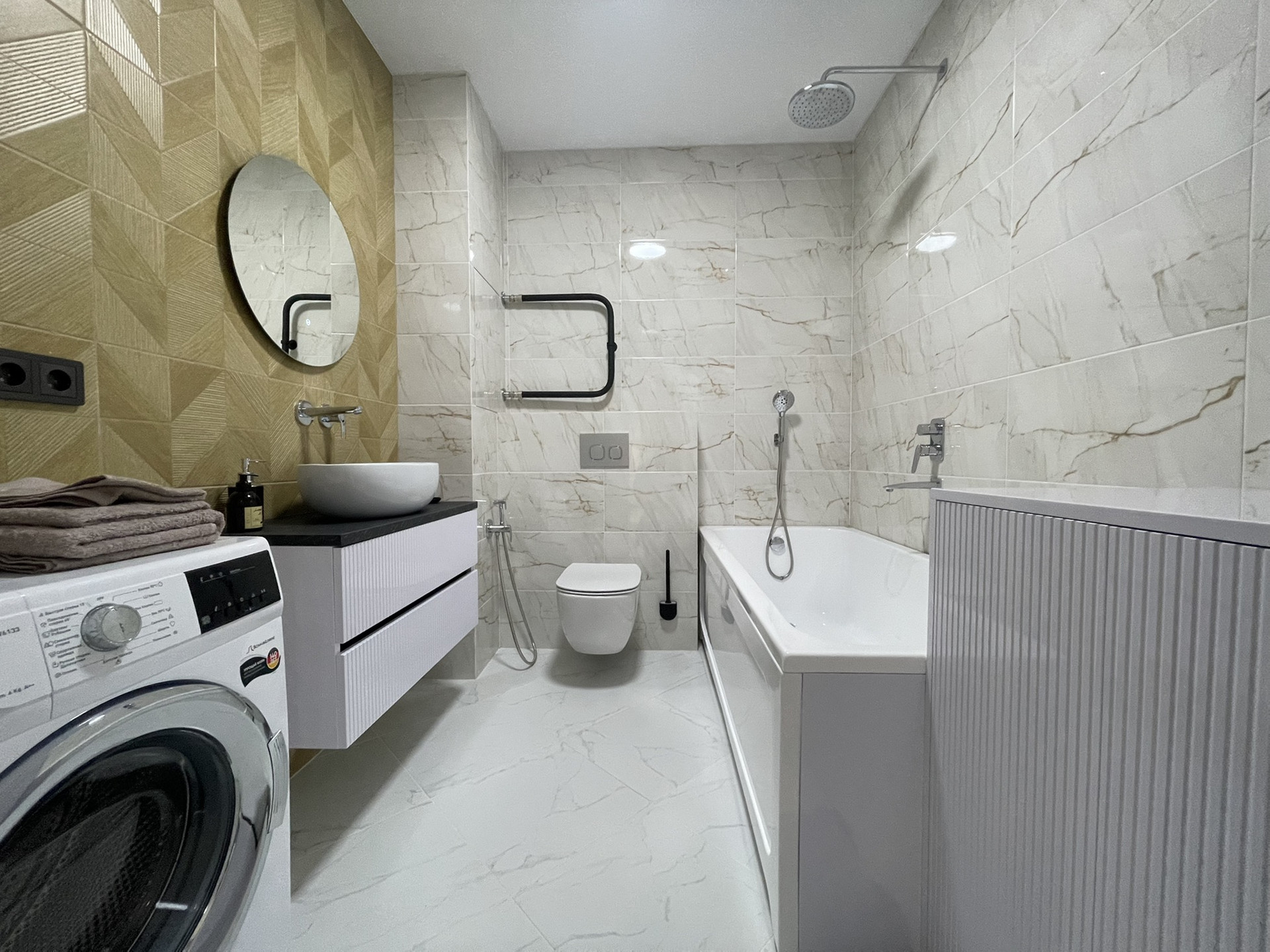 Шкафчик в санузле и пеналы аккуратно спрячут все бытовые предметы первой необходимости