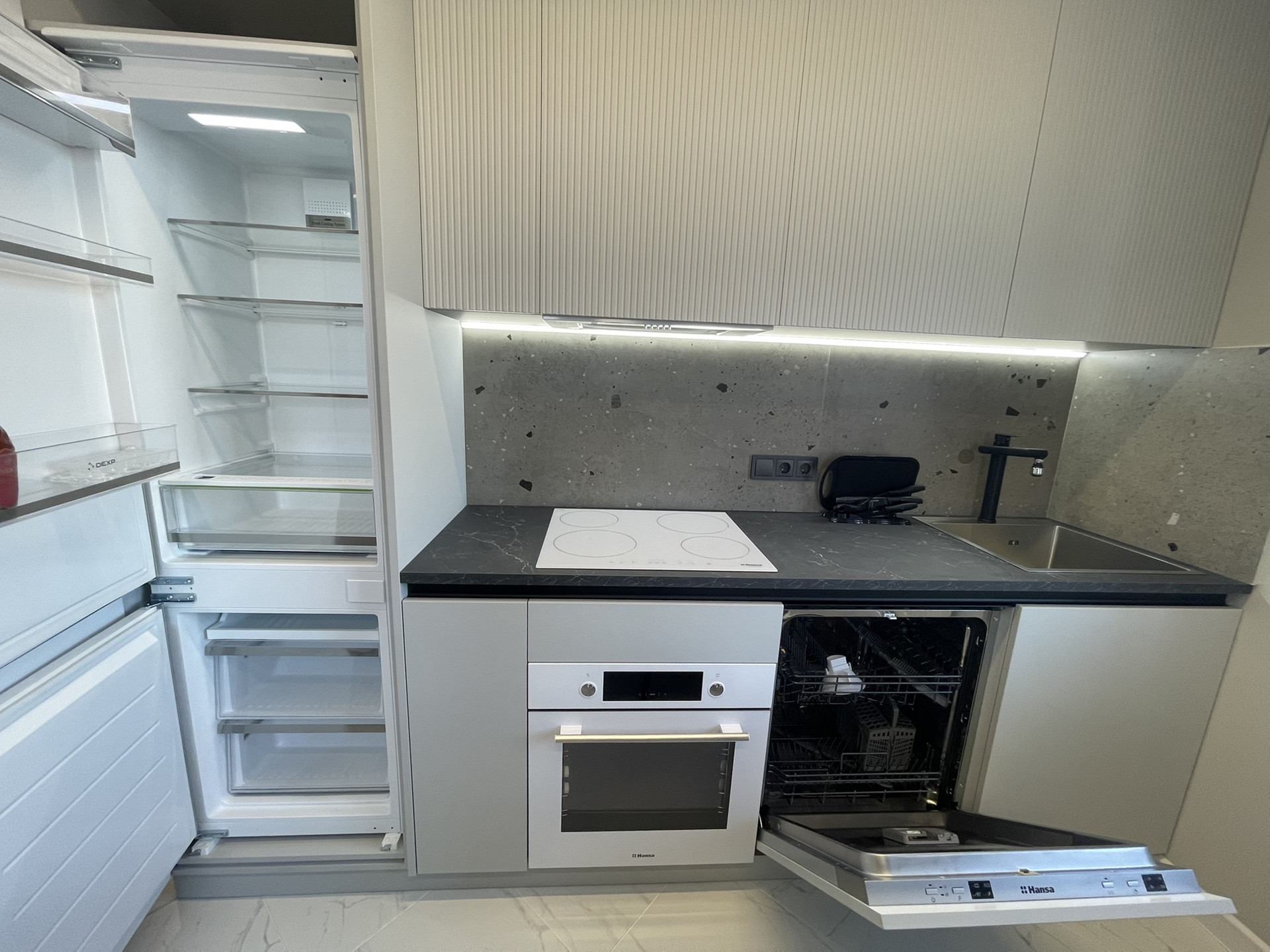 Духовой шкаф, посудомоечная машина, индукционная панель одной фирмы Hansa