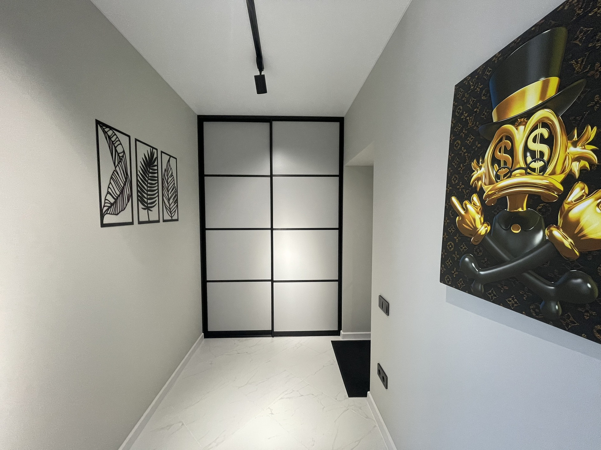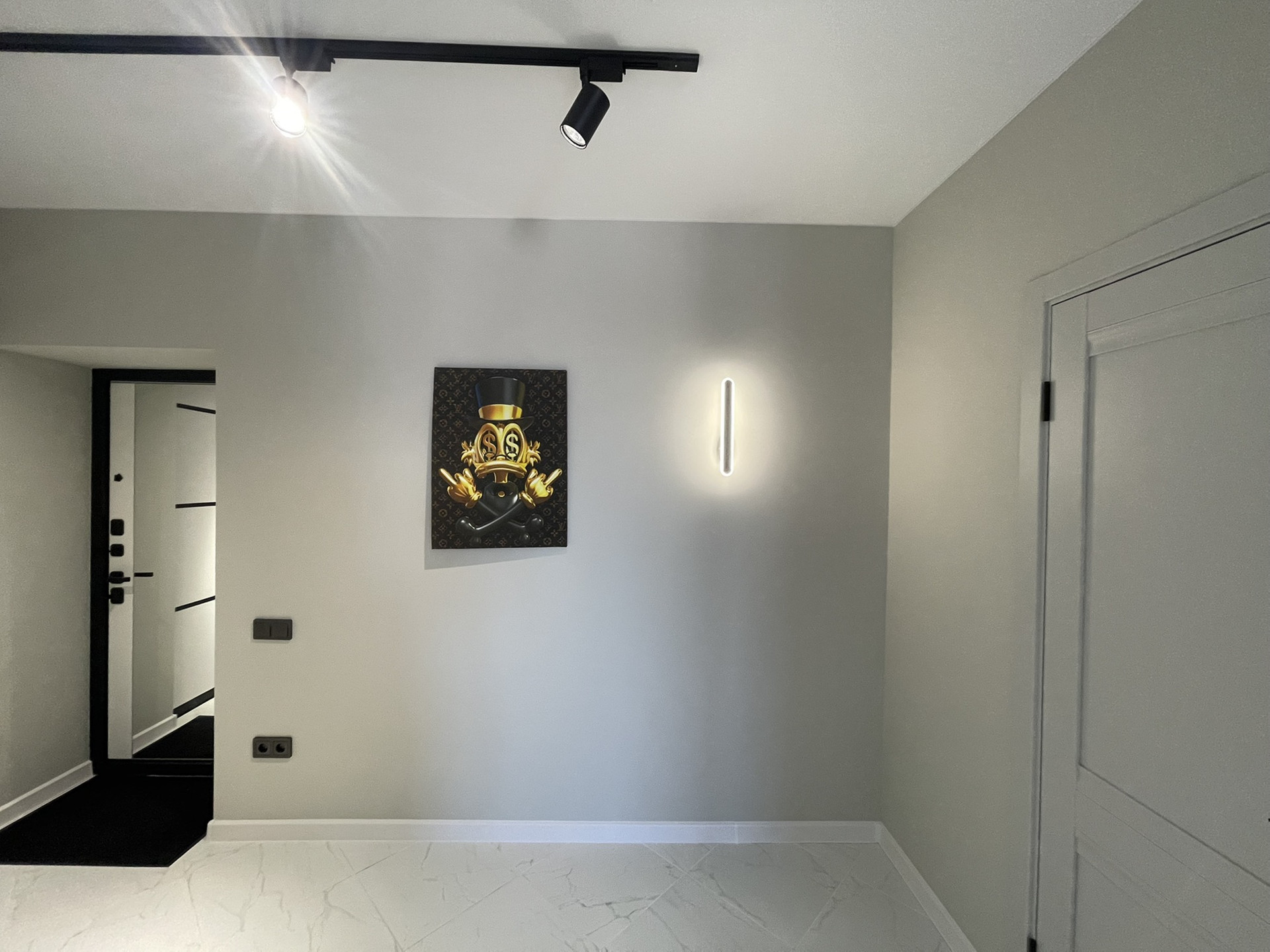 Стены прихожей и кухни-гостиной окрашены антивандальной краской Dulux