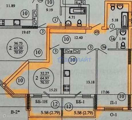 Общая площадь 70.55 м2