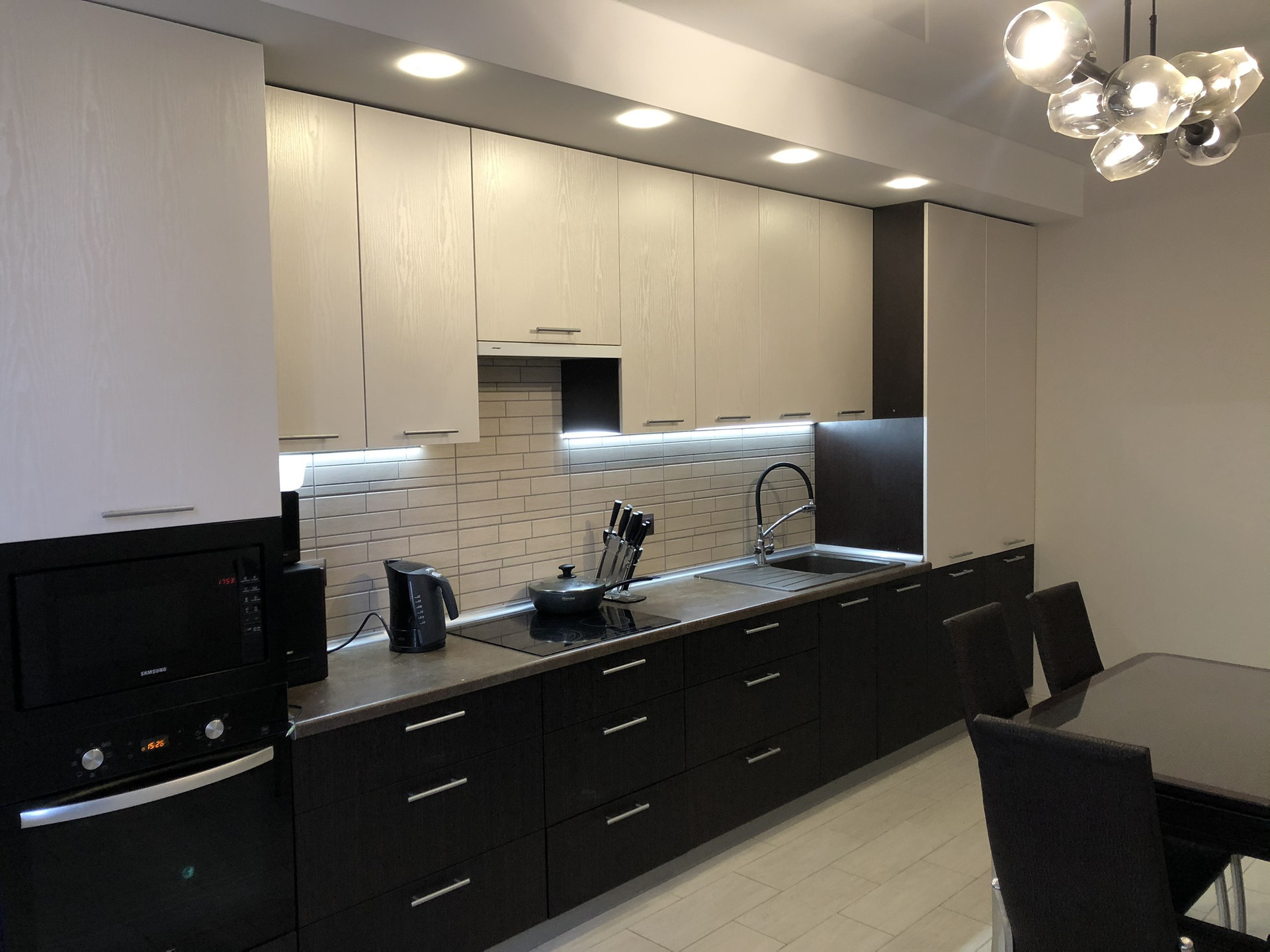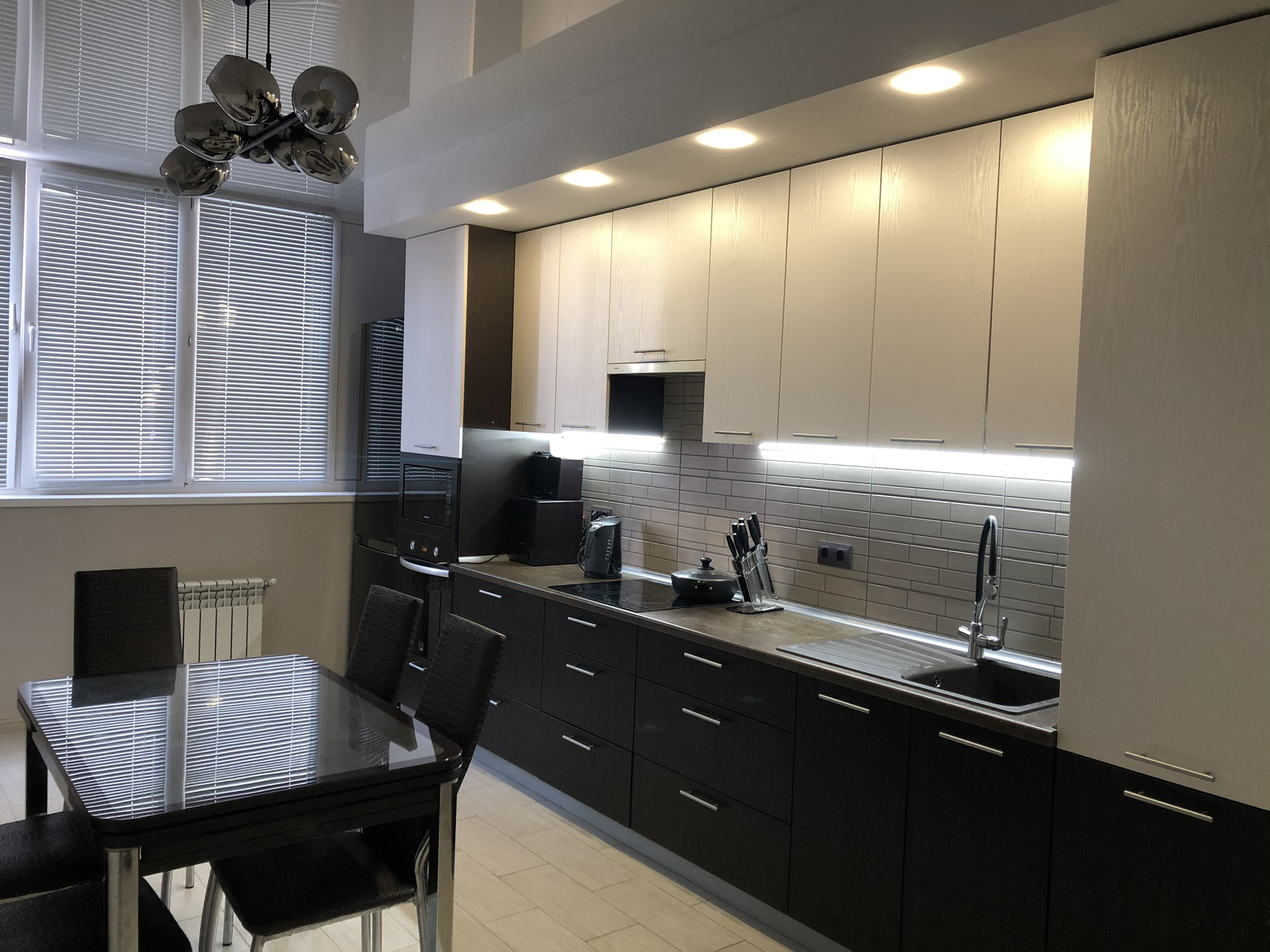 В квартире установлены два кондиционера (кухня и гостиная), два водонагревателя (кухня и ванная комната), в коридоре и ванной теплый пол в отопительный сезон.