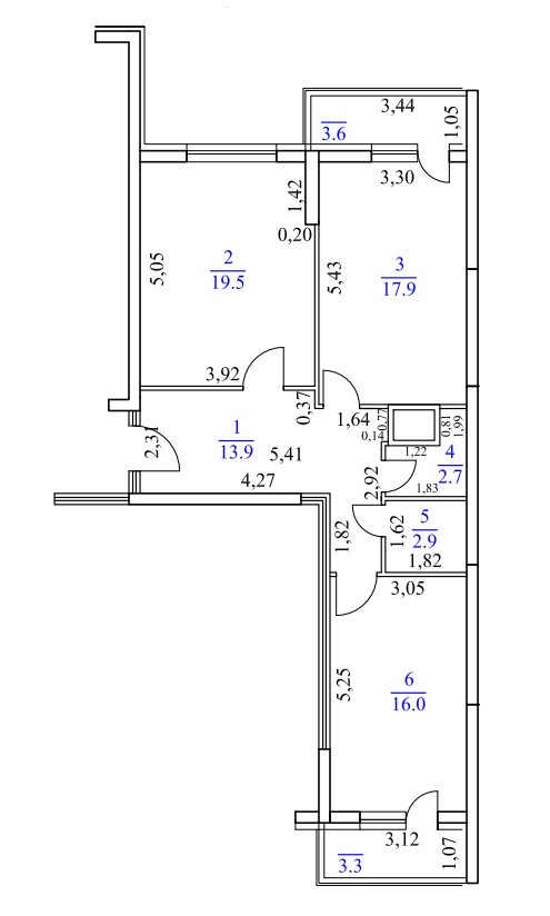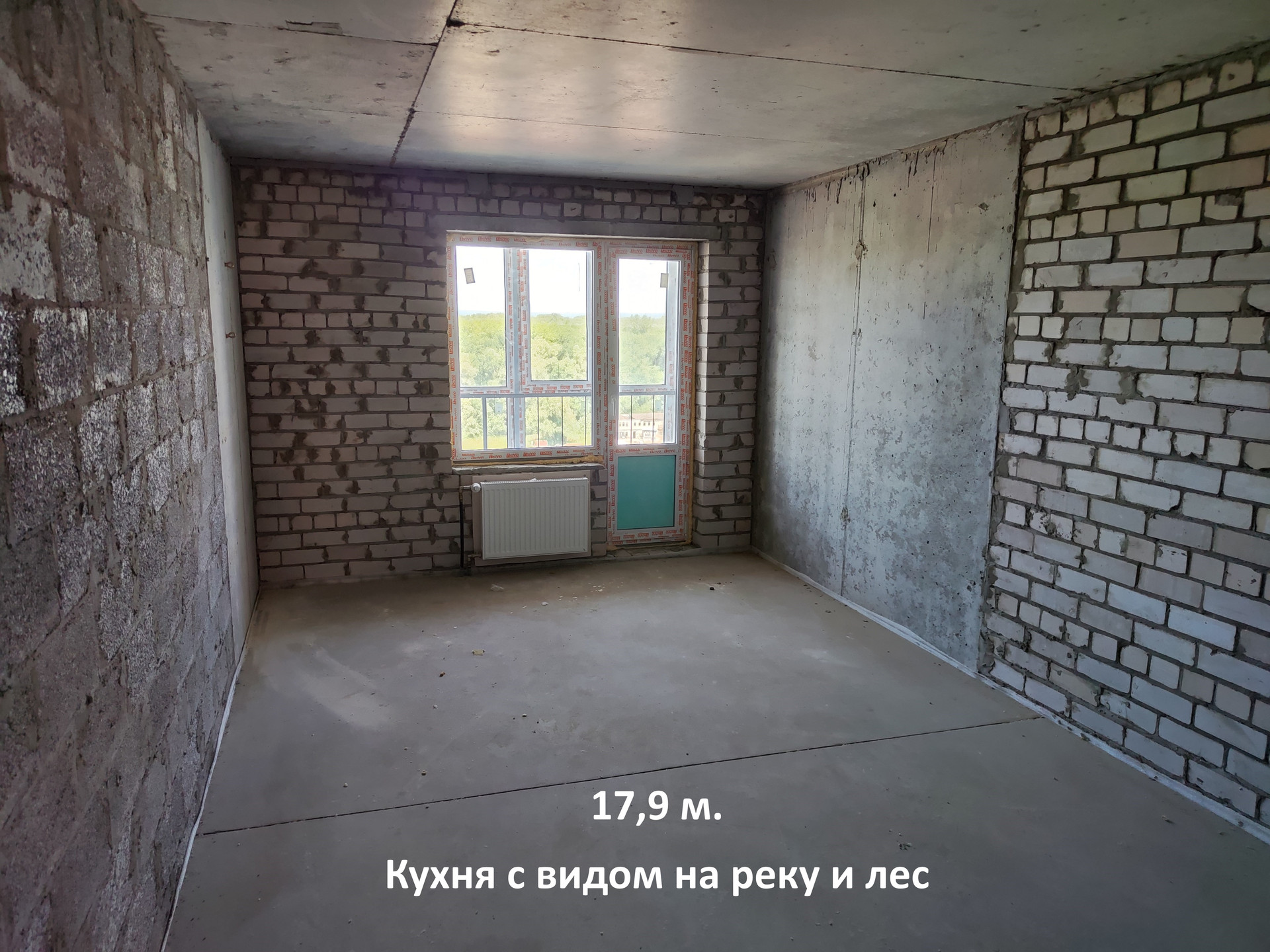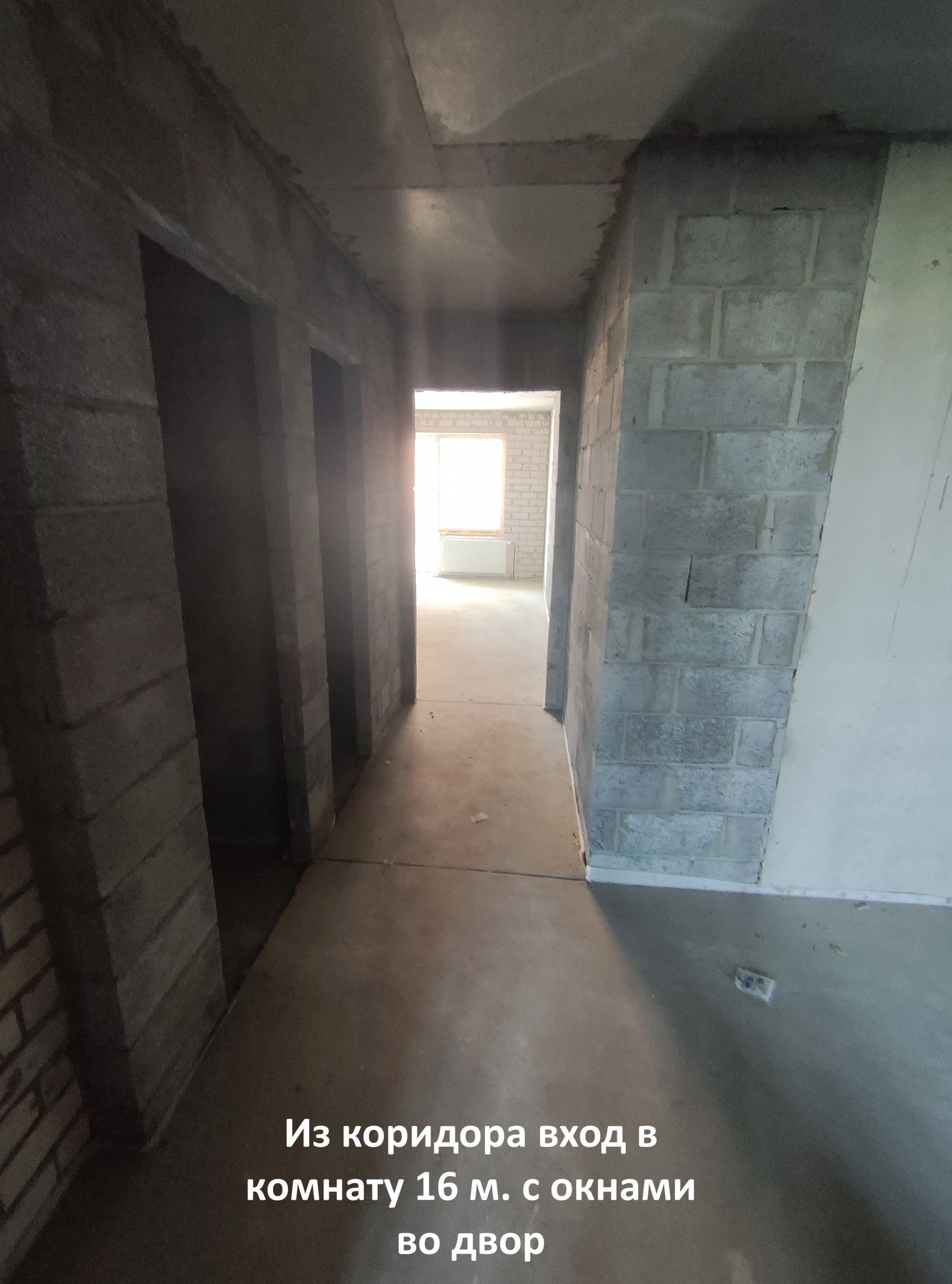 Общая площадь квартиры 76,4 кв.м. (указана с учётом лоджий, площадь которых считается с коэффициентом 0,5, т.е. делиться на два), большая кухня-гостиная 17,9 кв.м. (кухня очень просторная и с лоджией), большие комнаты 19,5 кв.м., 16 кв.м., просторный коридор 13,9 кв.м. (возможность организовать большую гардеробную), сан. узел раздельный, высота потолков - 2,7 м. В квартире черновая отделка, стяжка пола, ввод электричества до щитка, монтаж счетчиков гвс, хвс, радиаторов отопления, гидроизоляция санузла. Лоджии застеклены. В подъезде 3 лифта.