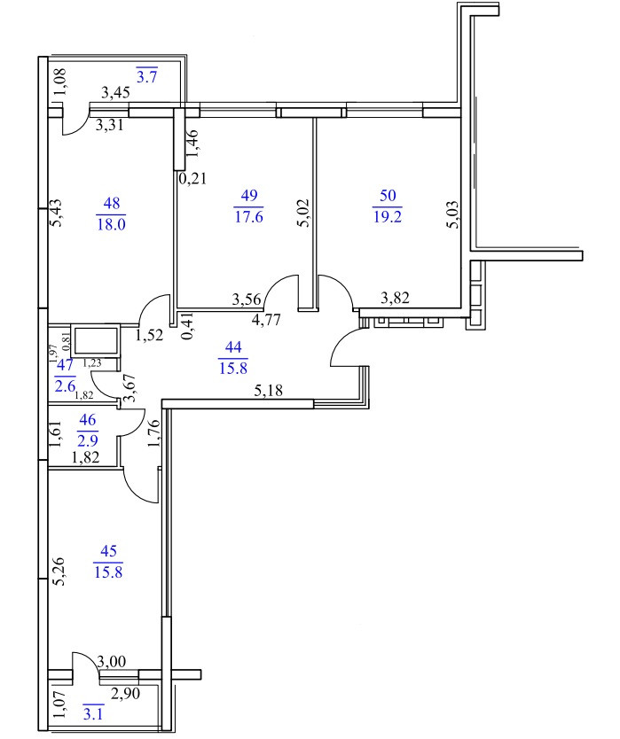 Общая площадь квартиры 95,3 кв.м. (указана с учётом лоджий, площадь которых считается с коэффициентом 0,5, т.е. делиться на два), большая кухня-гостиная - 18 кв.м. (можно объединить с комнатой, получится огромная кухня-гостиная, но и без этого кухня очень просторная и с лоджией), комфортные комнаты 19,2 кв.м., 17,6 кв.м., 15,8 кв.м., просторный коридор 15,8 кв.м. (возможность организовать большую гардеробную), сан. узел раздельный, высота потолков - 2,7 м. В квартире черновая отделка, стяжка пола, ввод электричества до щитка, монтаж счетчиков гвс, хвс, радиаторов отопления, гидроизоляция санузла. Лоджии застеклены. В подъезде 3 лифта. Отделка подъезда достойная.