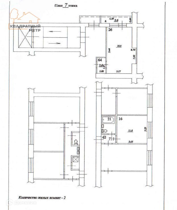 Жилая площадь 64.7 м2