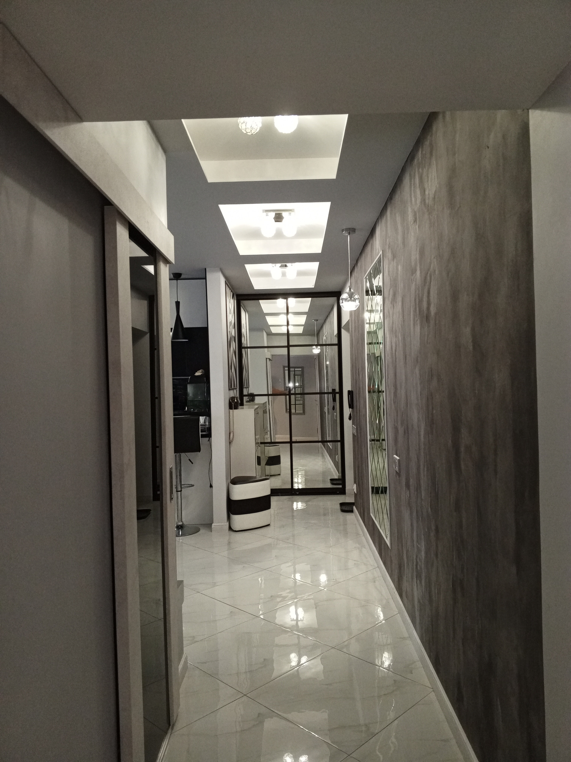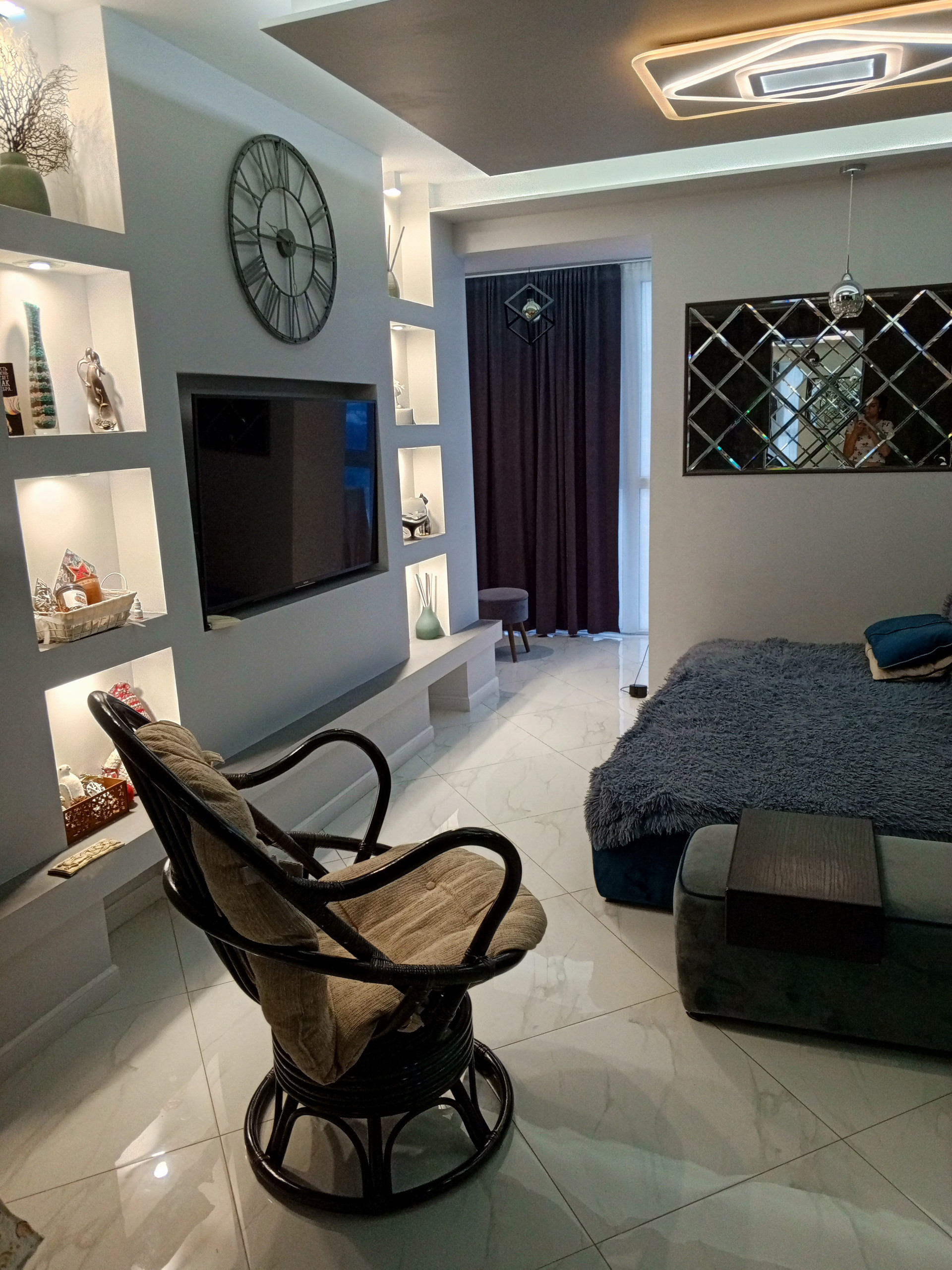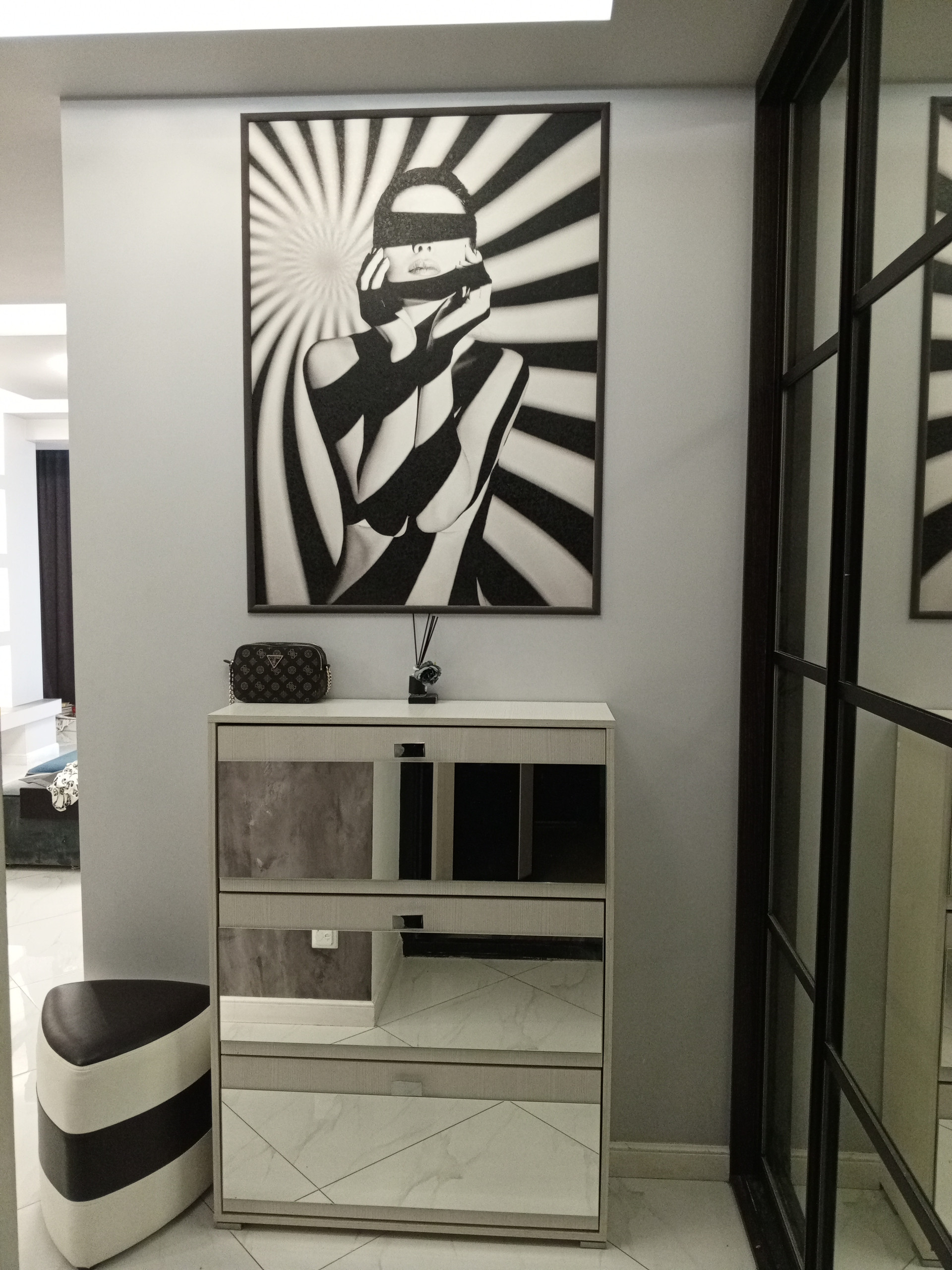Квартира отделана зеркальными пано