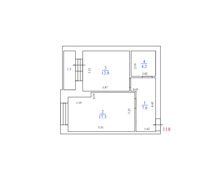 Жилая площадь 17.3 м2