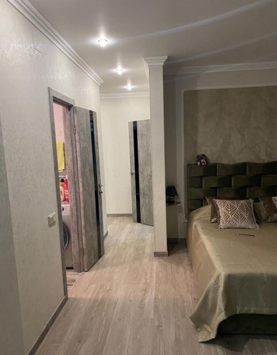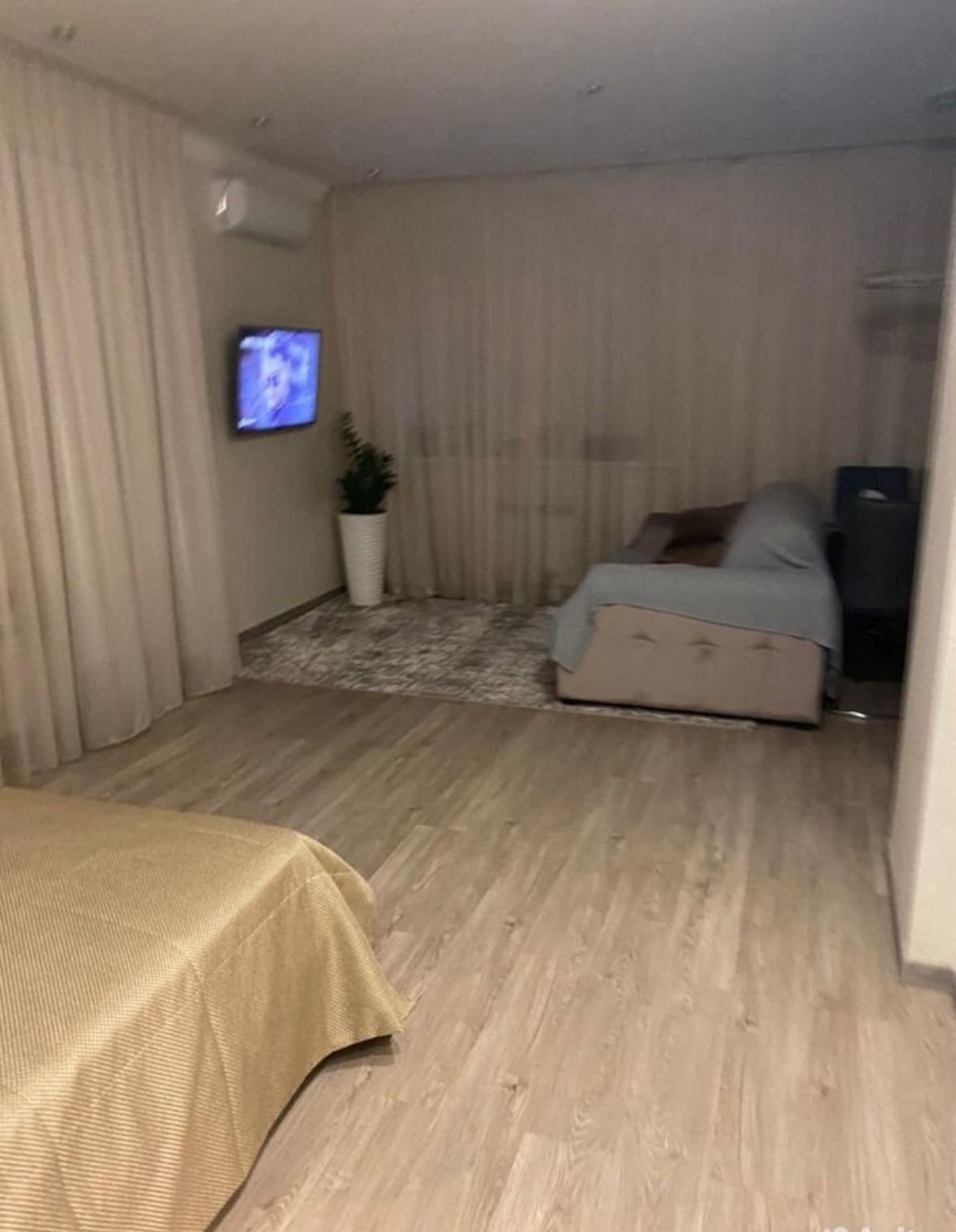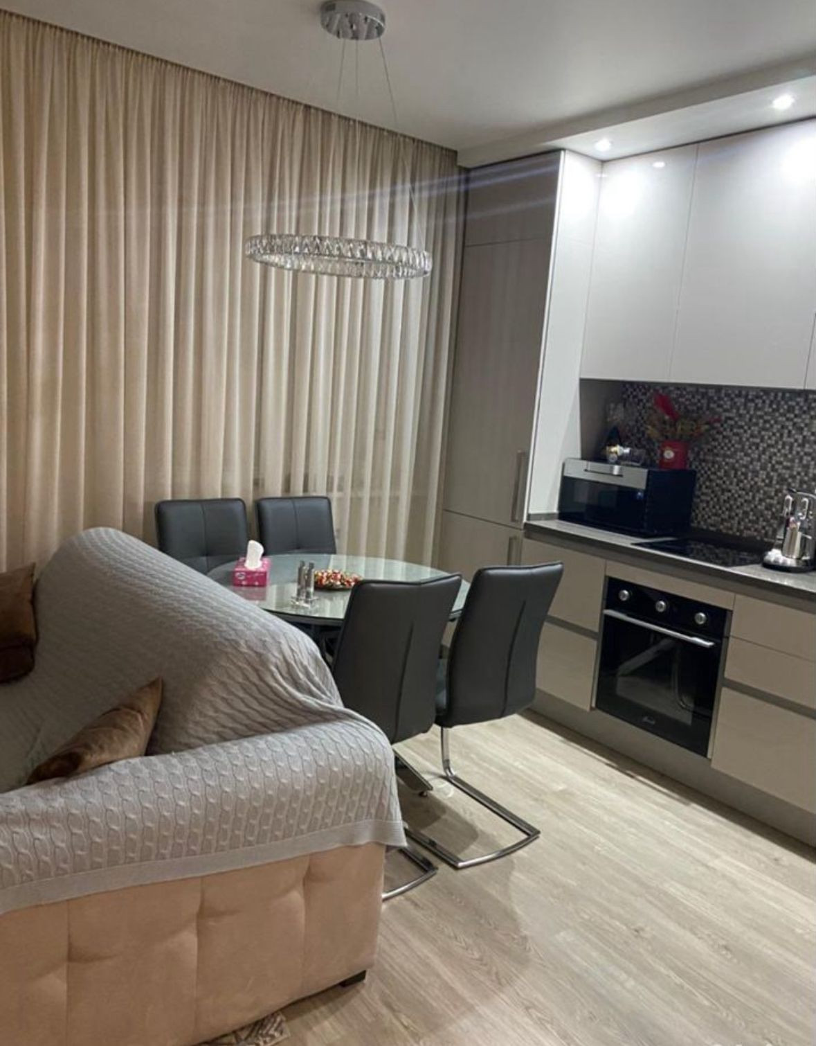 Квартира сделана как студия с дизайнерским ремонтом. С/у совмещенный. На лоджии панорамные окна с видом во двор. Отдельная комната-гардеробная. Теплые полы, водонагреватель, кондиционер. Пассажирский и грузовой лифт.