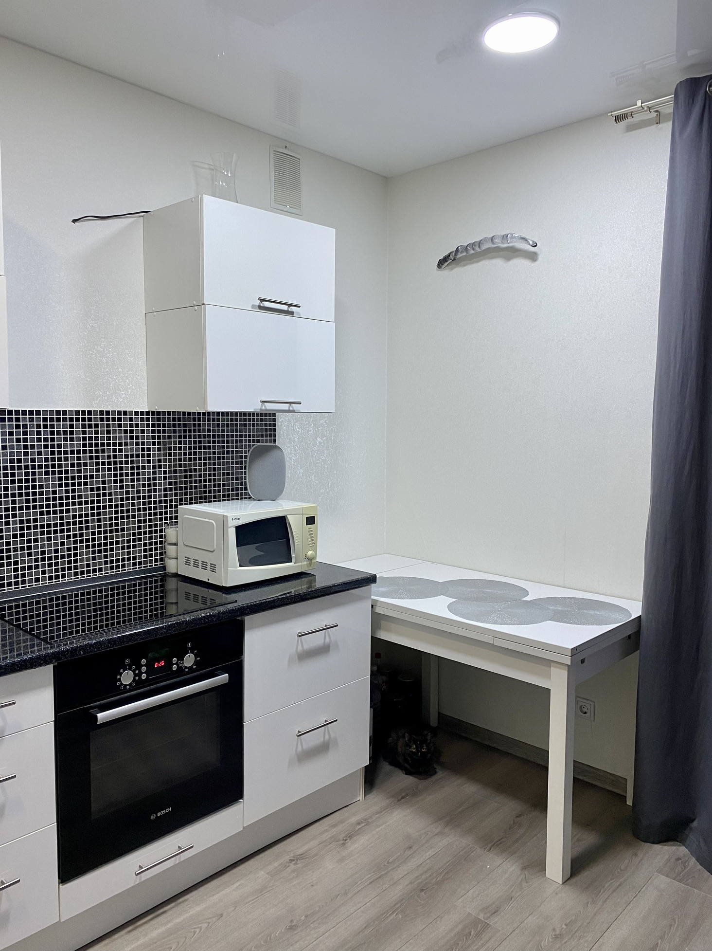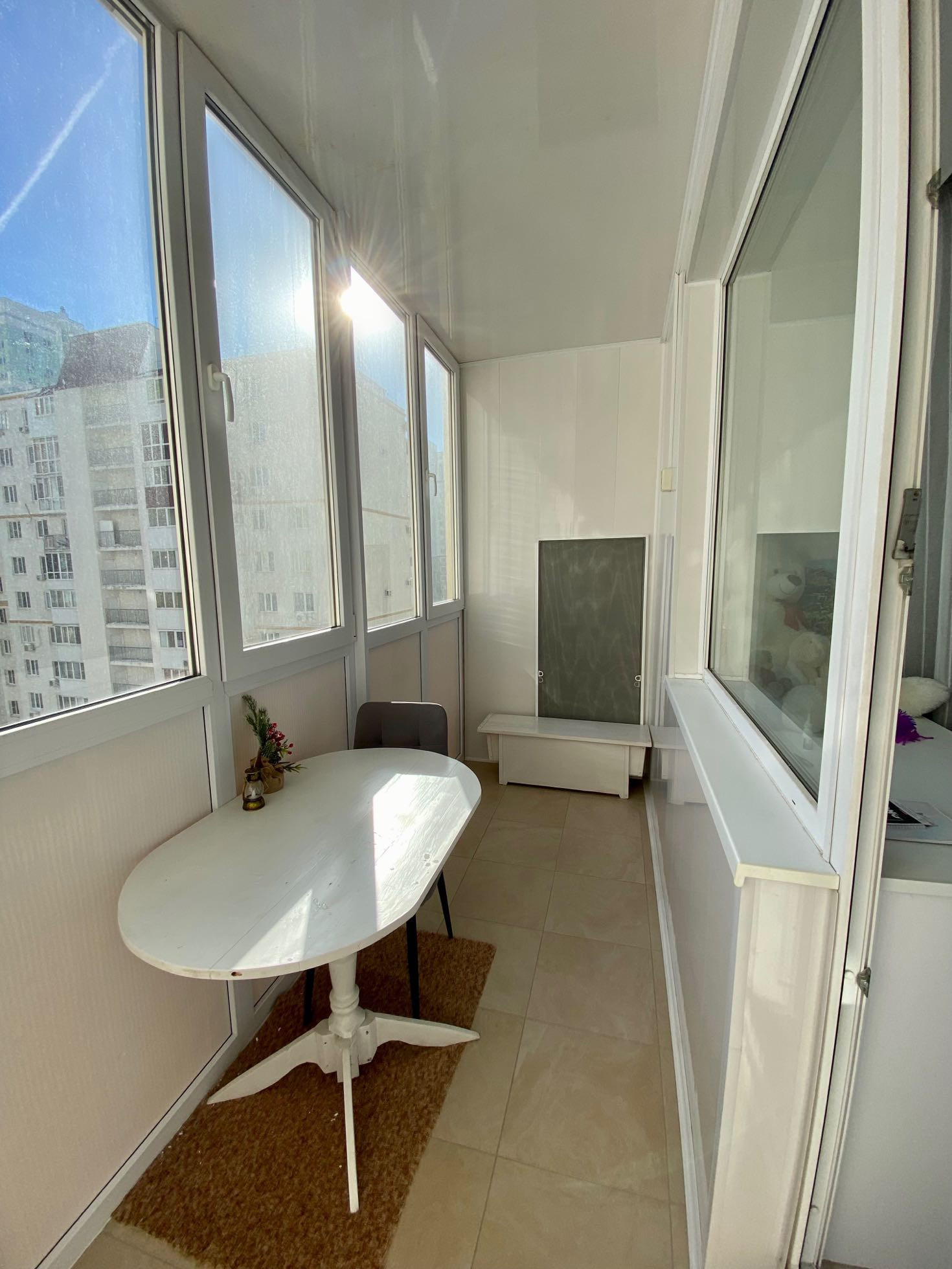 В квартире сделан добросовестный ремонт для постоянного проживания, квартира теплая в зимнее время и прохладная в летнее, светлая. Имеется удобный гардероб, в санузле поставлены водонагреватель на 50 литров, а также качественный полотенцесушитель немецкого производства. Встроенная техника (варочная панель и духовой шкаф) остаются вместе с кухонным гарнитуром. Остальная техника и мебель по соглашению.