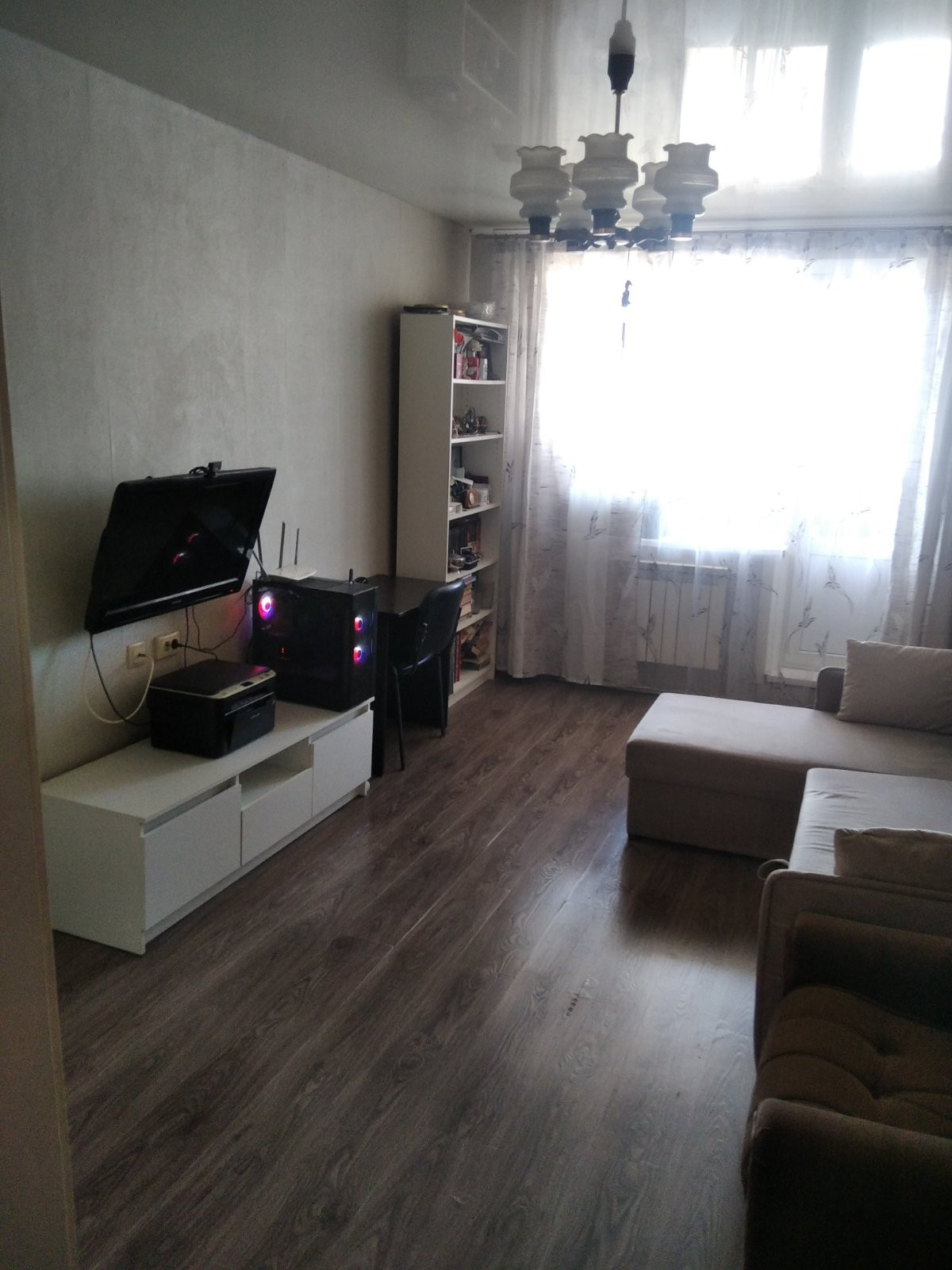 квартира на три стороны.Комнаты 17.2 м.смежные.Спальня 12.4 отдельно. кухня 7.8 м.коридор 8.6 м. В больших комнатах две лоджии, на кухне балкон.Окна пластиковые, полы ламинат. Кухня ,  коридор плитка. Два кондиционера в зале и спальне. Натяжные потолки везде. Проводка заменена. Радиаторы биметалл. Лоджии застекленные , на балконе крыша. Оставляем кухонный гарнитур , шкафы купе в коридоре, часть мебели в комнатах. Квартира на 12 этаже над нами никого, никто не шумит и не беспокоит. В 2023 году заменили оба лифта , проблем нет..Рядом магазины Пятёрочка, Перекрёсток, рынок Караван. Удобная транспортная доступность. Школы,поликлиники, детские сады в шаговой доступности. В собственности более двадцати лет, два взрослых собственника.Никто не прописан.