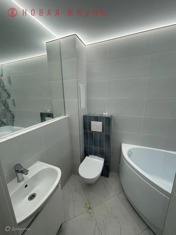 На стенах в прихожей, кухне и комнатах качественные обои под декоративную штукатурку. Красивое многоуровневое освещение с выделением зон по периметру квартиры. Санузел весь в плитке.