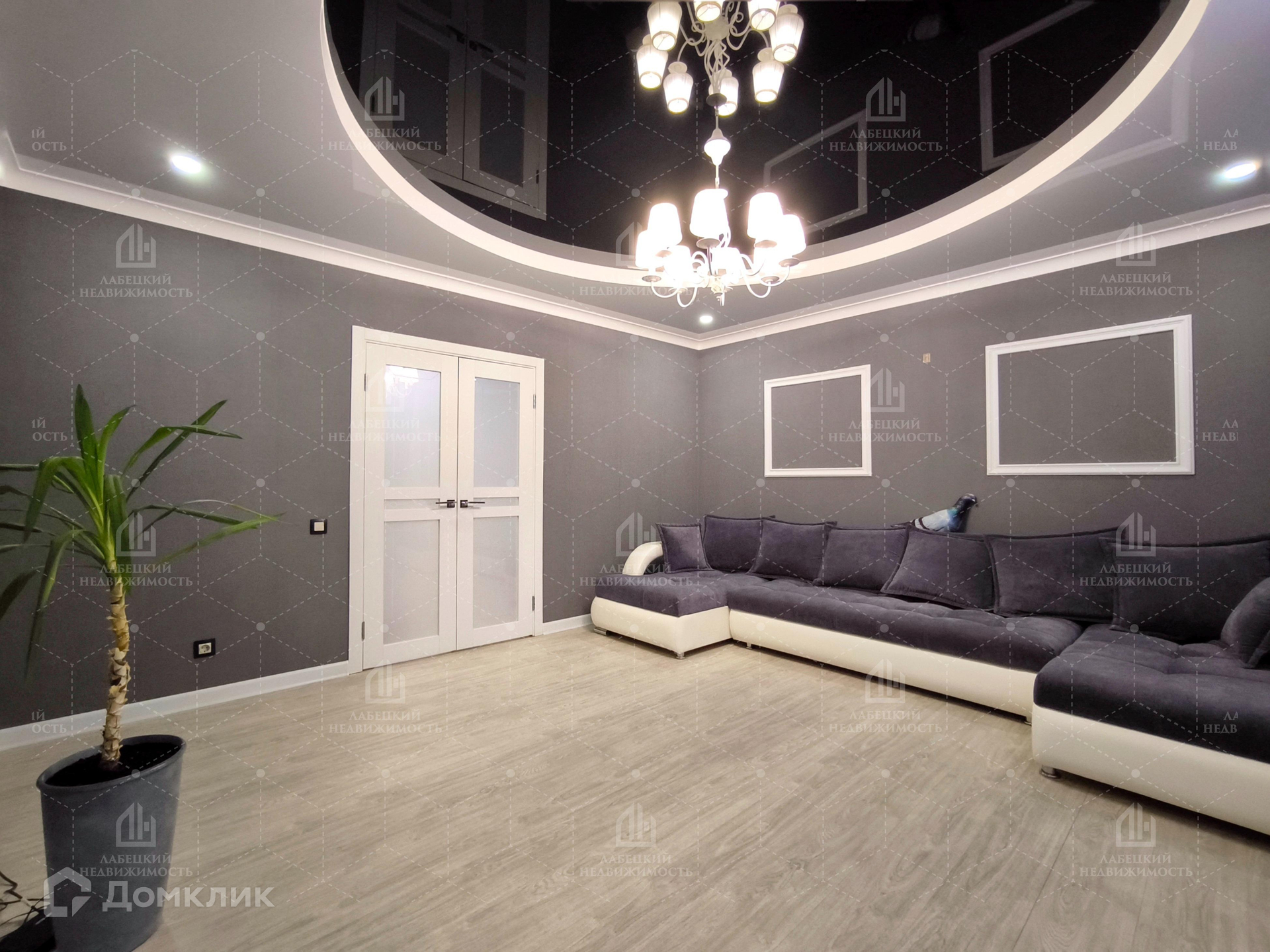 ПРОСТОРНАЯ гостиная – 19,5 кв. м. Большой диван 4,2 м выполнен под заказ. Из гостиной есть выход в отдельное помещение 5,9 кв.м, которое можно использовать как кабинет.