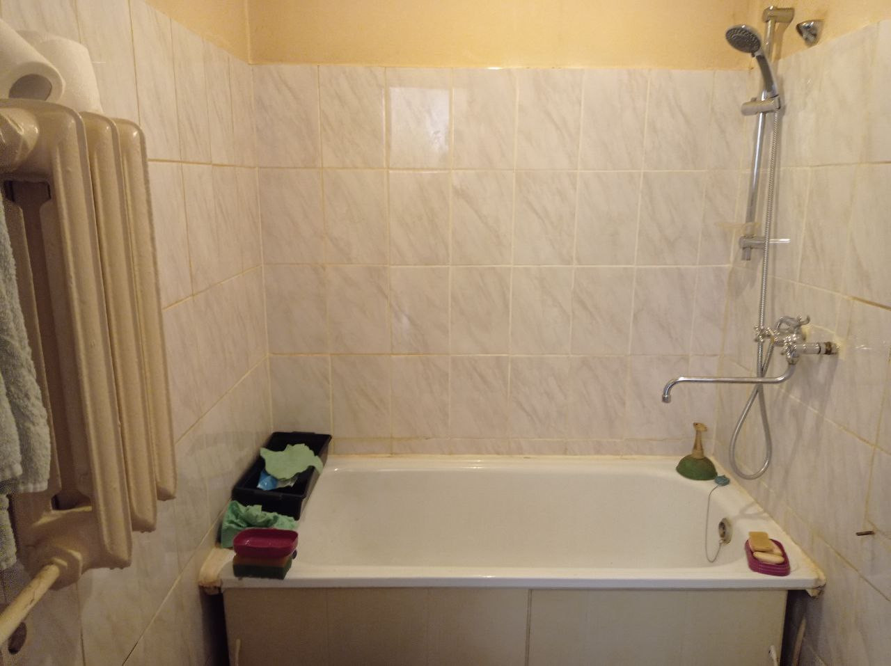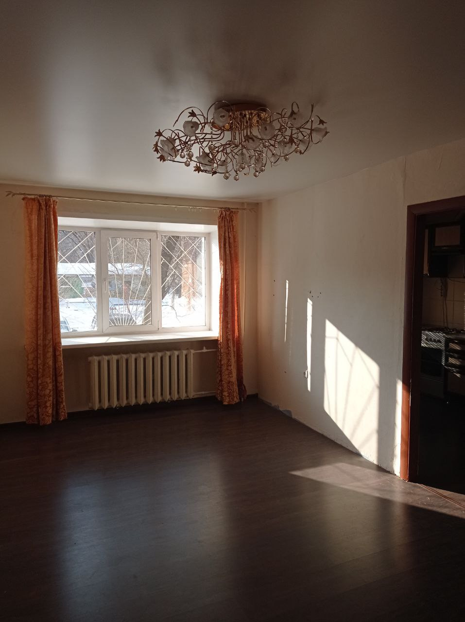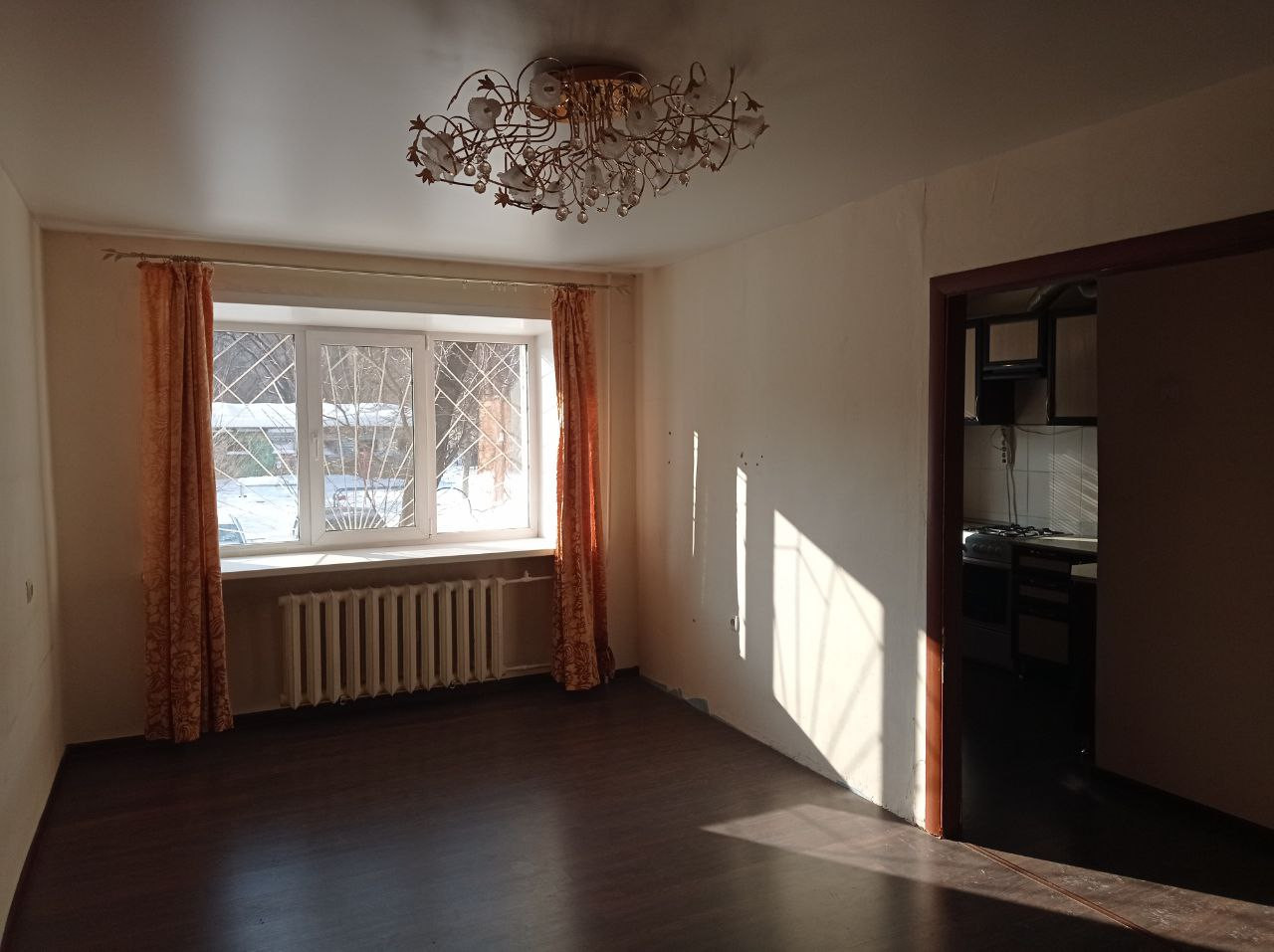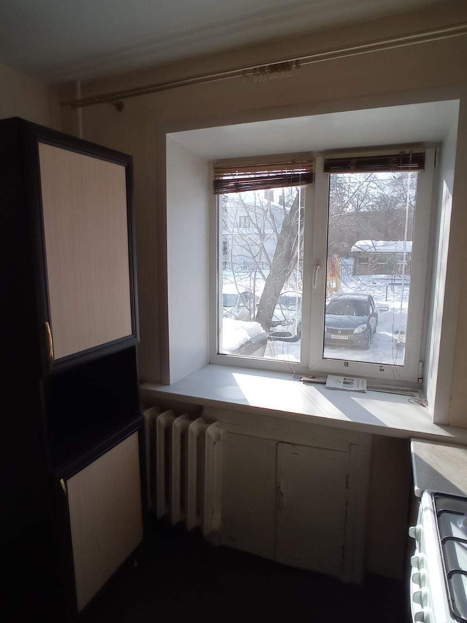 Отопление - чугунные батареи, протечек нет. Трубы заменены на пластиковые. На кухне установлен кухонный гарнитур, газовая плита Greta, газовая колонка Zanussi, газовый счетчик. Санузел совмещенный, на полу и стенах плитка. Входная дверь металлическая.