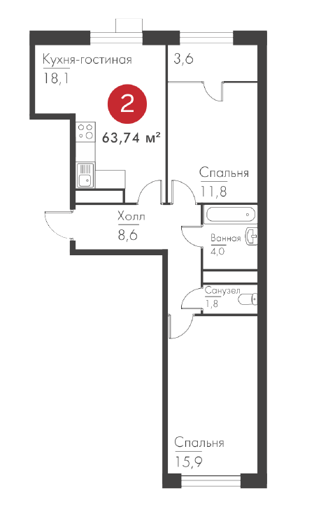 Общая площадь 64.1 м2