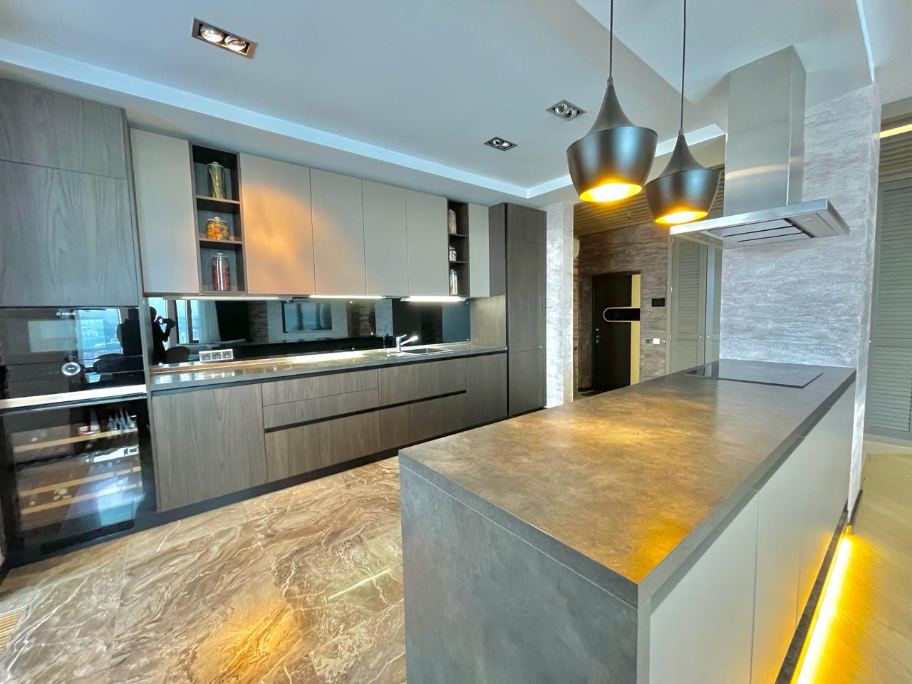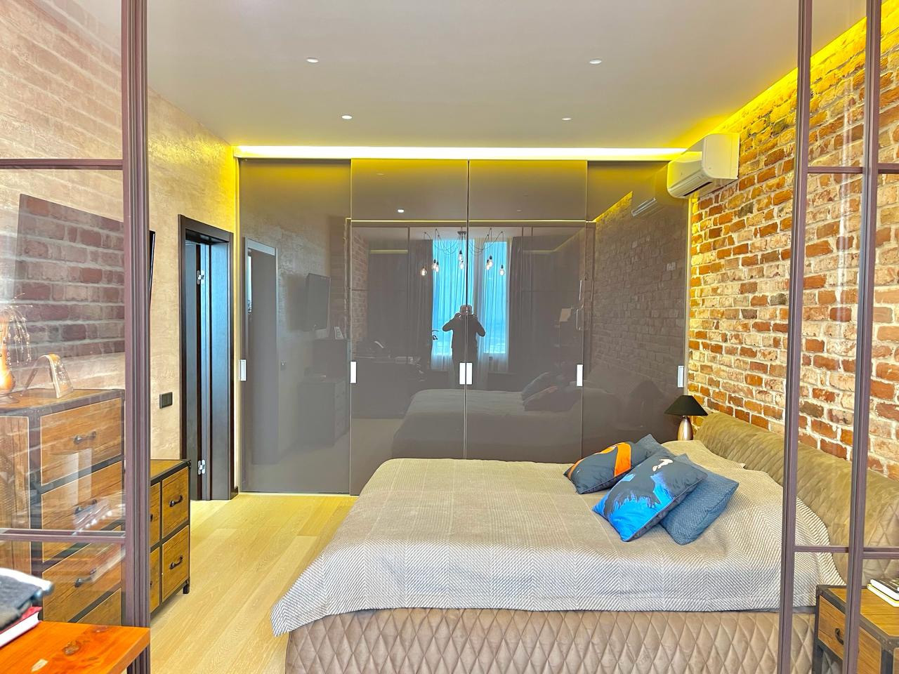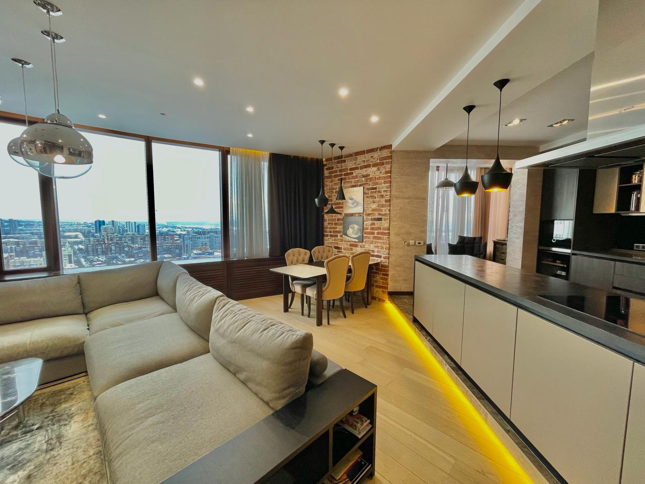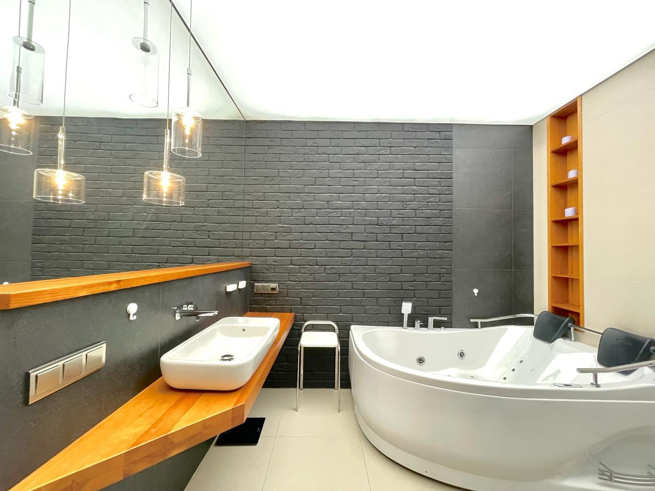 В квартире выполнен дизайнерский ремонт в стиле  Лофт. Использовались дорогие качественные строй материалы, техника BOSCH, итальянская мебель. Система кондиционирования, теплые полы, био камин, высокие потолки 3м.