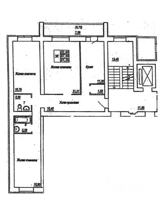 Жилая площадь 52.9 м2