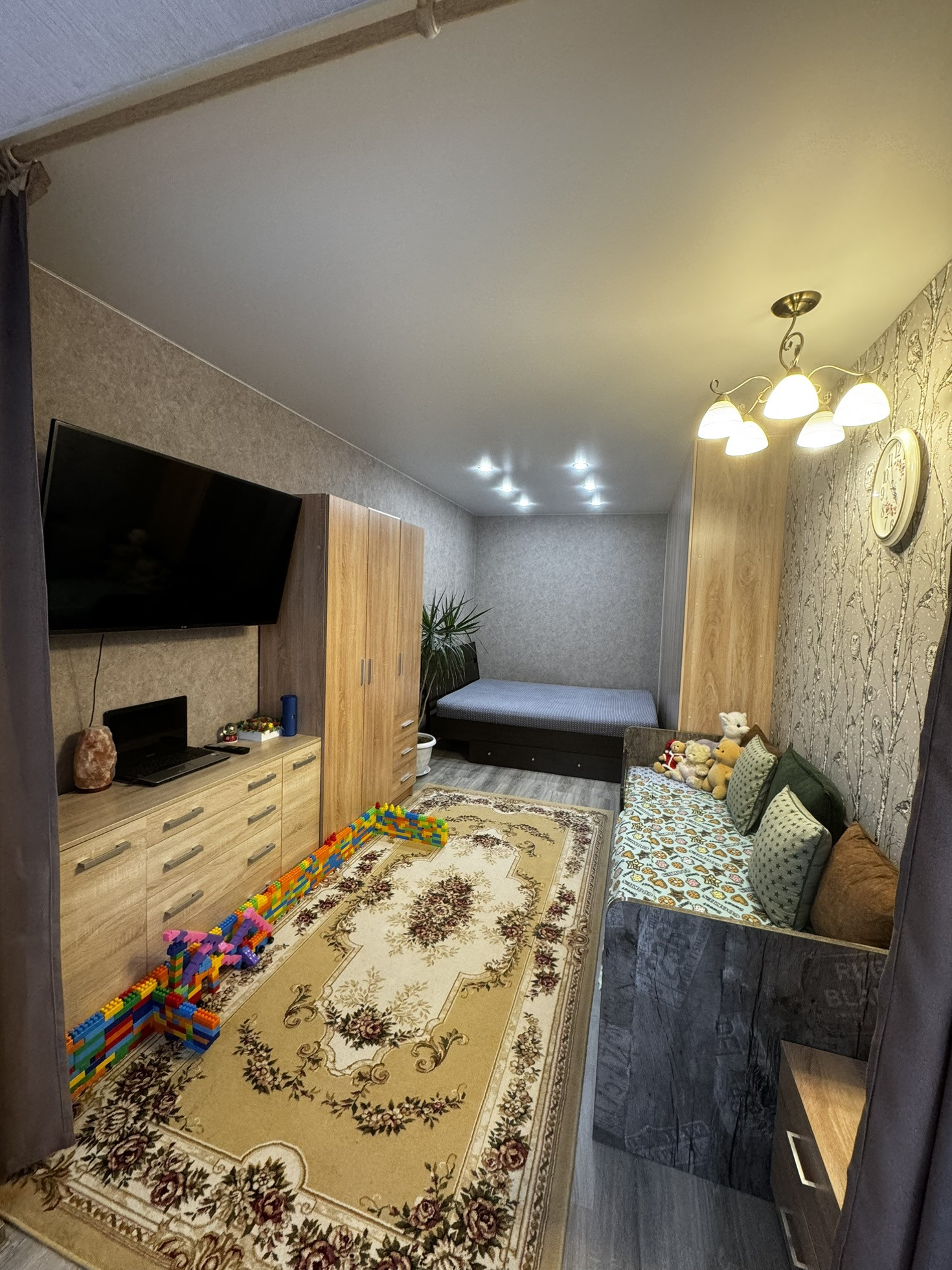 Уютная , чистая и очень теплая квартира в спальном районе,с отличным ремонтом,новым кондиционером,встроенной кухней,большим шкафом-купе.