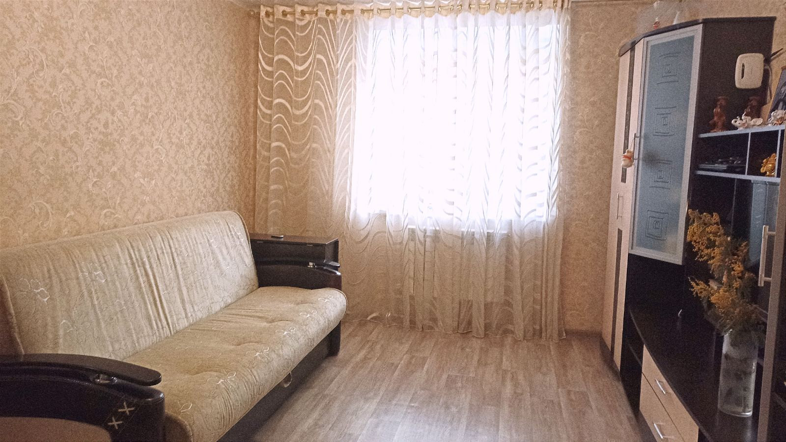     Остается мебель: стенка, диван, кресло, кухонный гарнитур, большой встроенный коридорный шкаф, мебель в санузле.