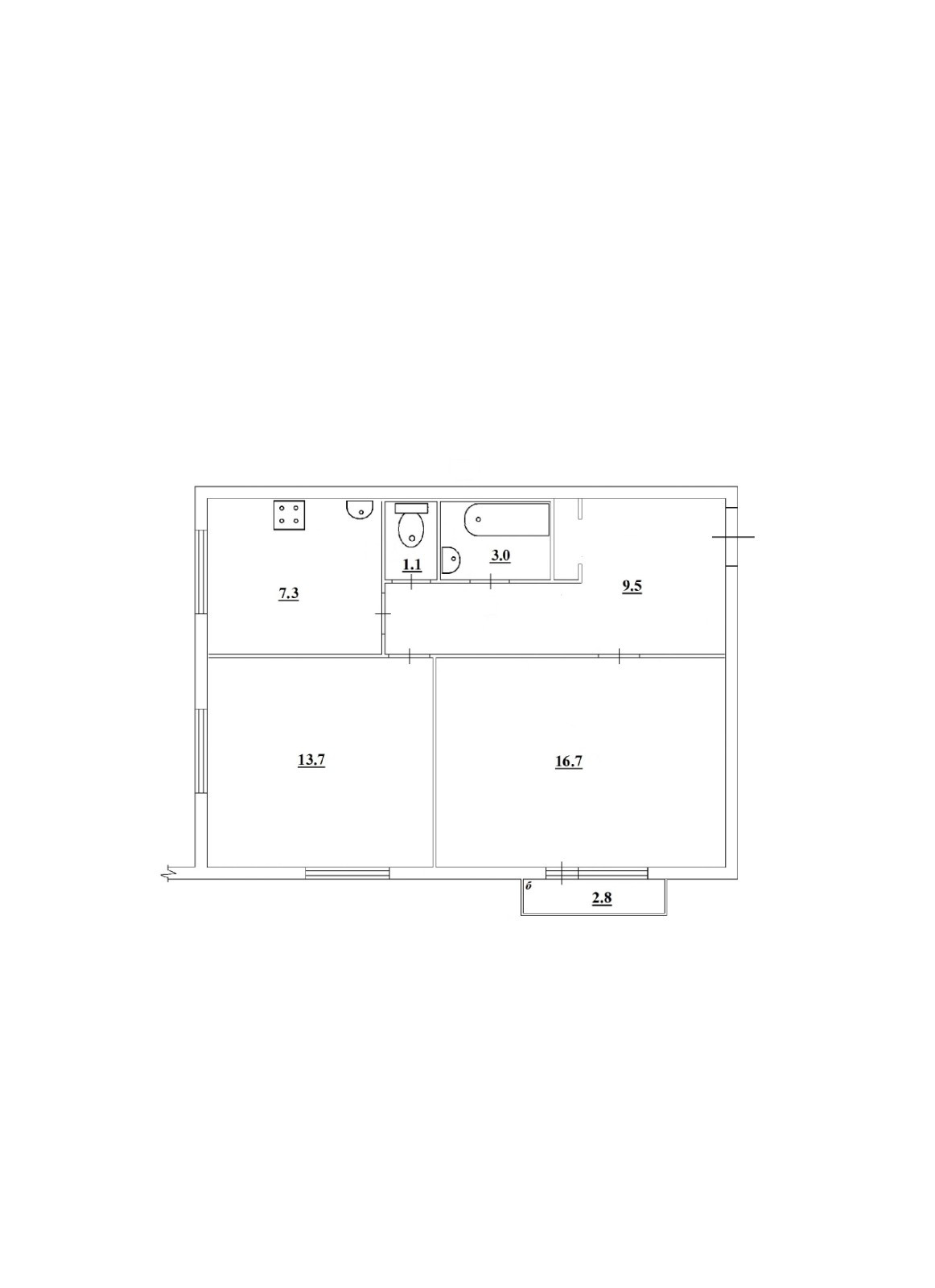 Балкон, лоджия 1 балкон