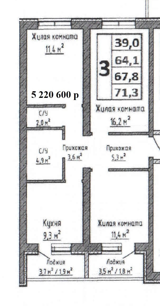 Общая площадь 67.8 м2