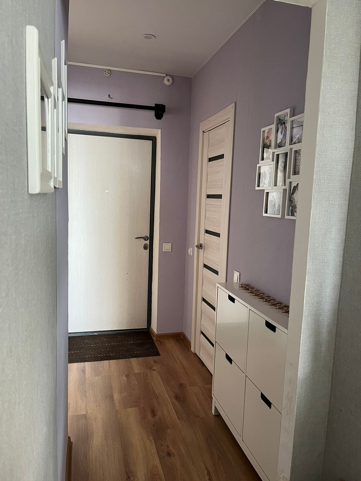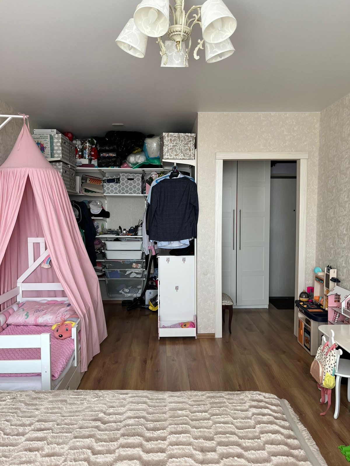 Оборудована удобная функциональная гардеробная, с достаточным количеством шкафов и полок.
