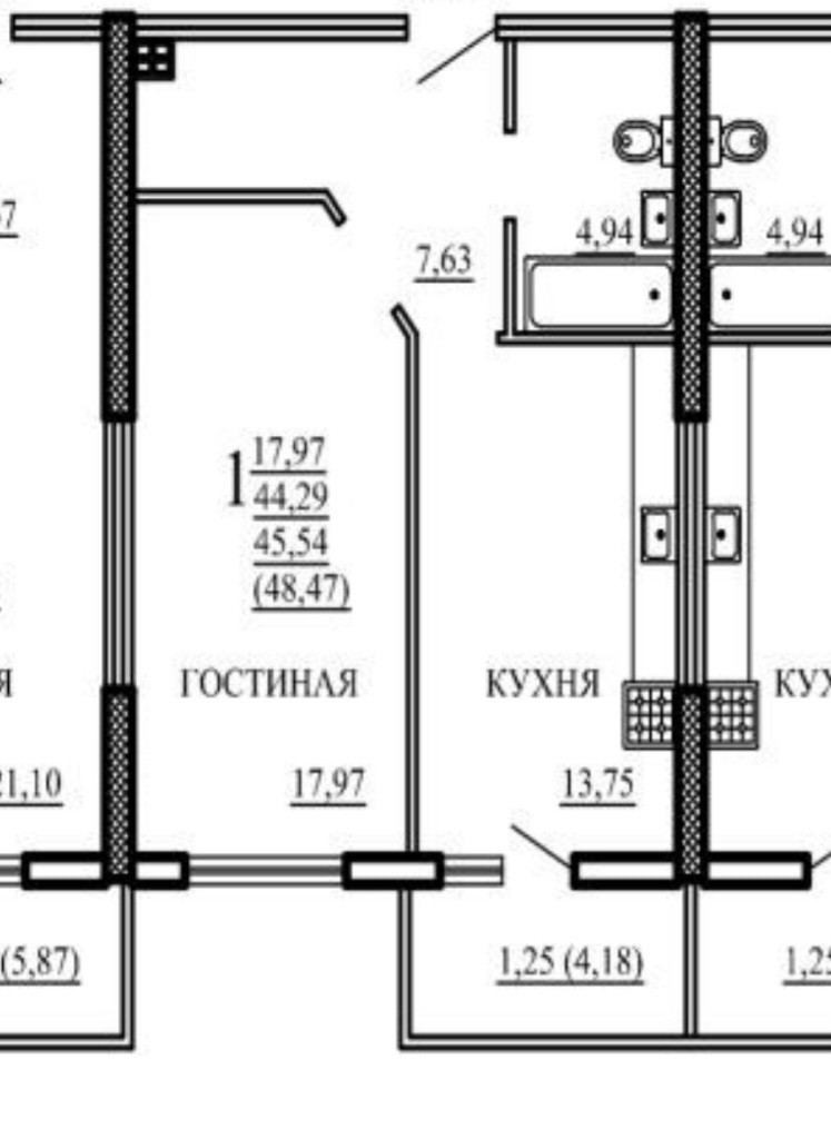 Общая площадь 43.6 м2