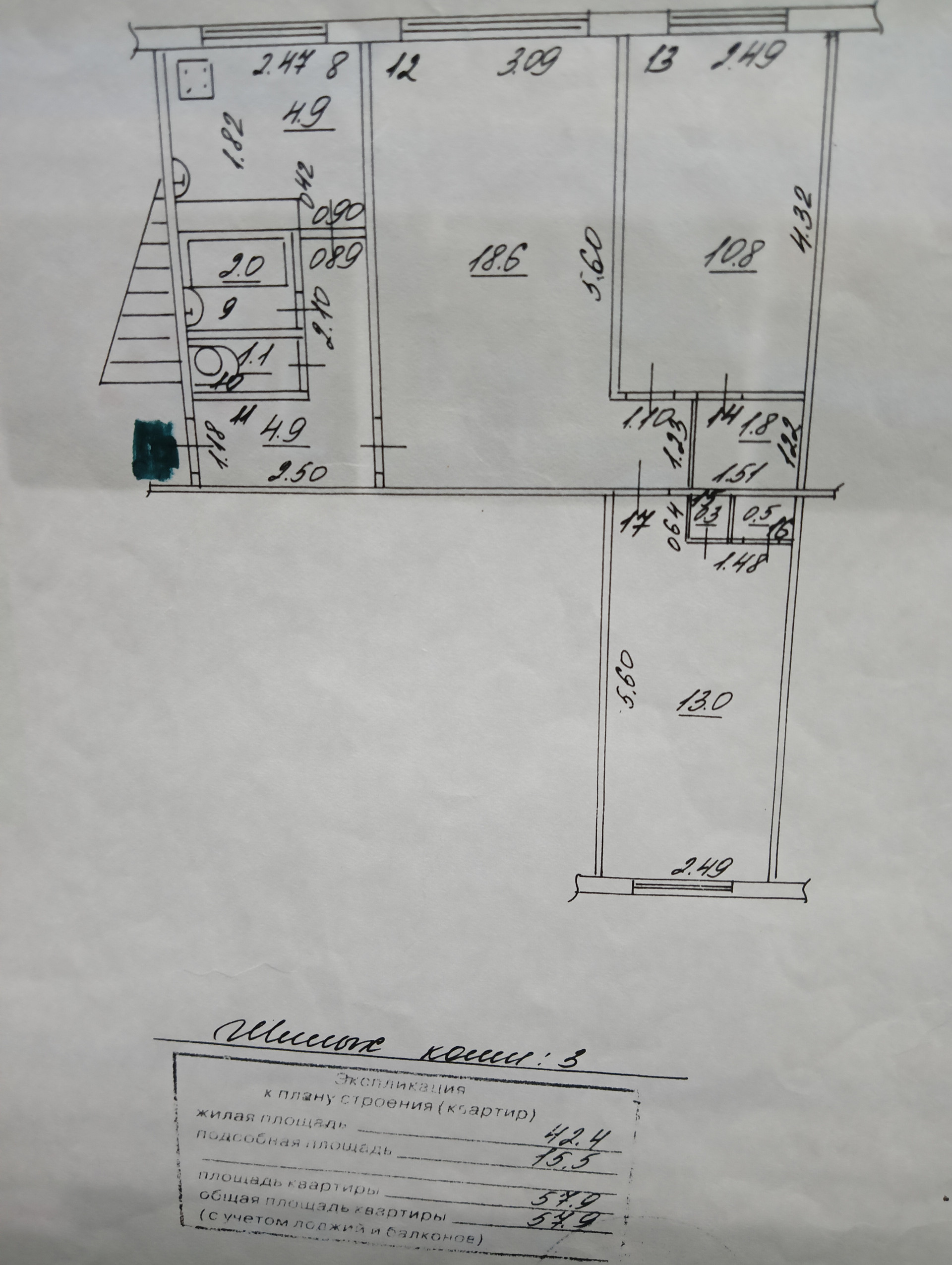 Общая площадь 57.9 м2