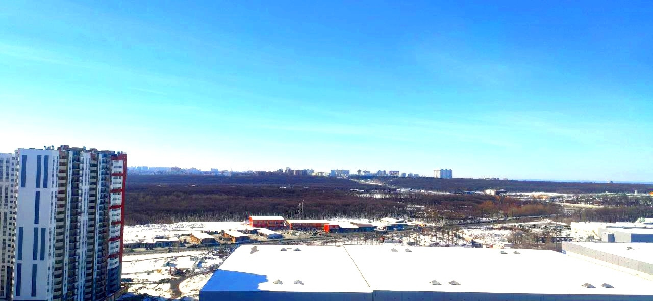 Квартира черновая, есть стяжка по всей площади объекта, вид из окна на город.
