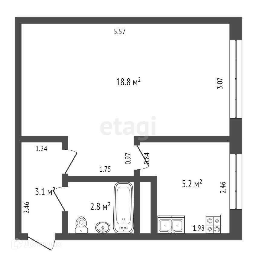 Площадь кухни 5.2 м2