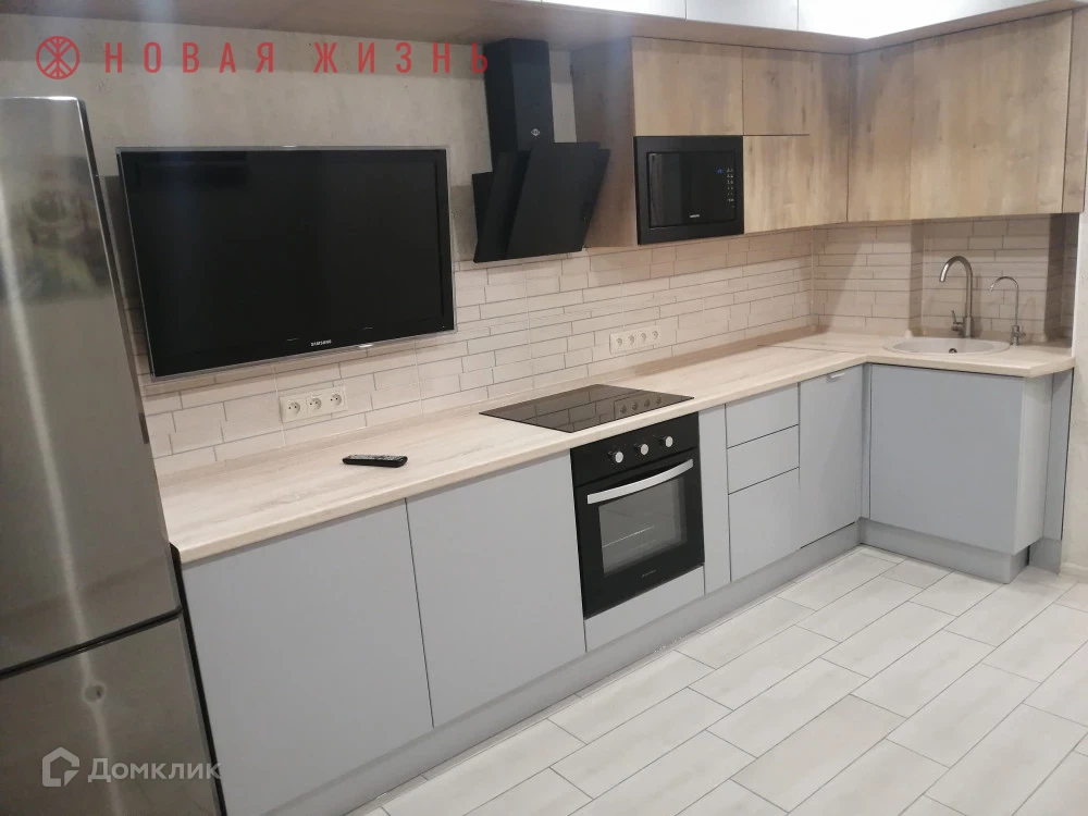 В квартире сделан современный ремонт. Остается мебель и техника: кухонный гарнитур со встроенной техникой, диван, водонагреватель.