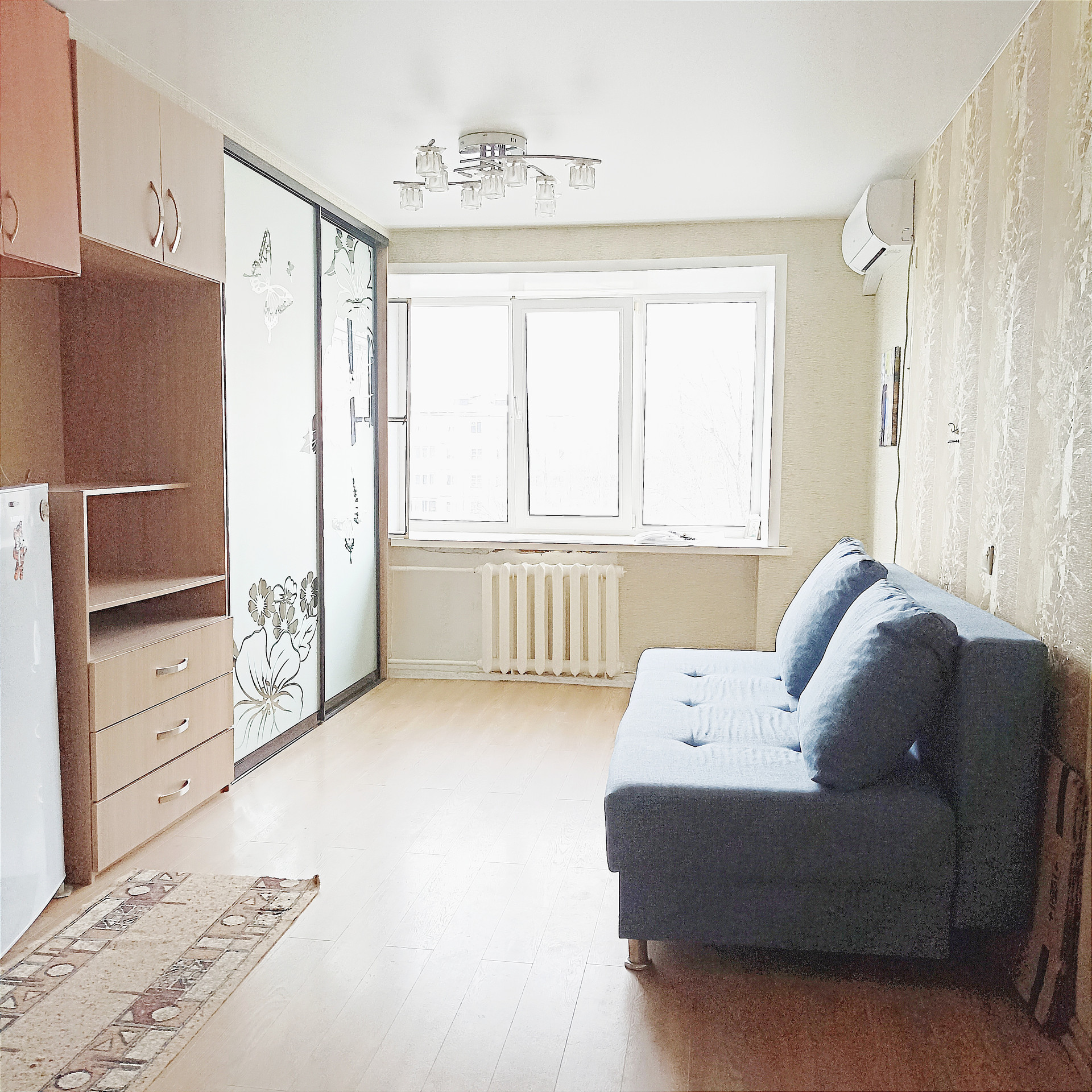 Собственность., площадь 18.2 м.кв,.,состояние отличное, кондиционер,натяжной потолок,линолеум,окно ПВХ, комната тёплая, очень светлая не угловая,, всё трубы и сан. техника заменены,душевая кабина. Оставим  кухонный гарнитур,шкаф-купе,прихожую,
