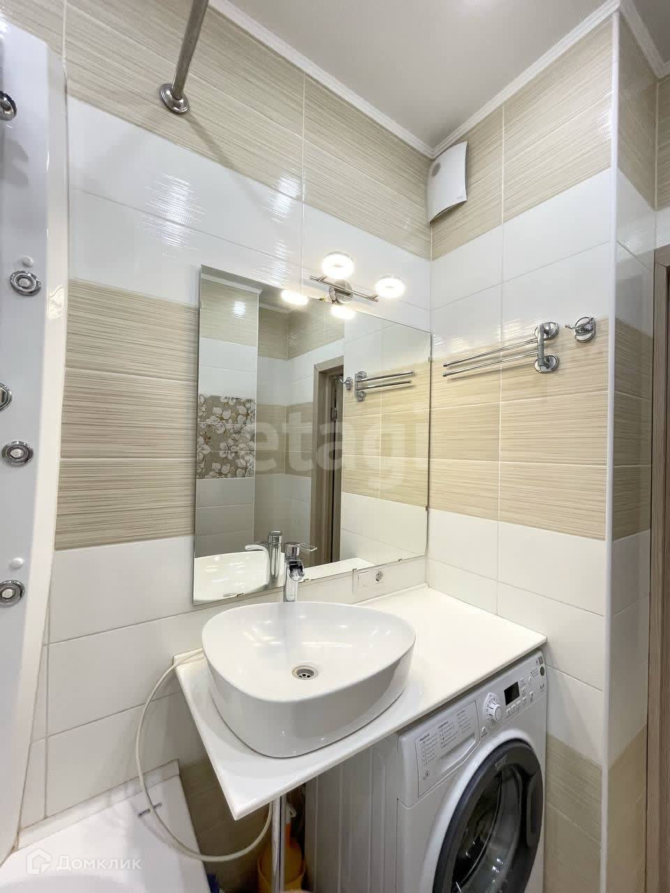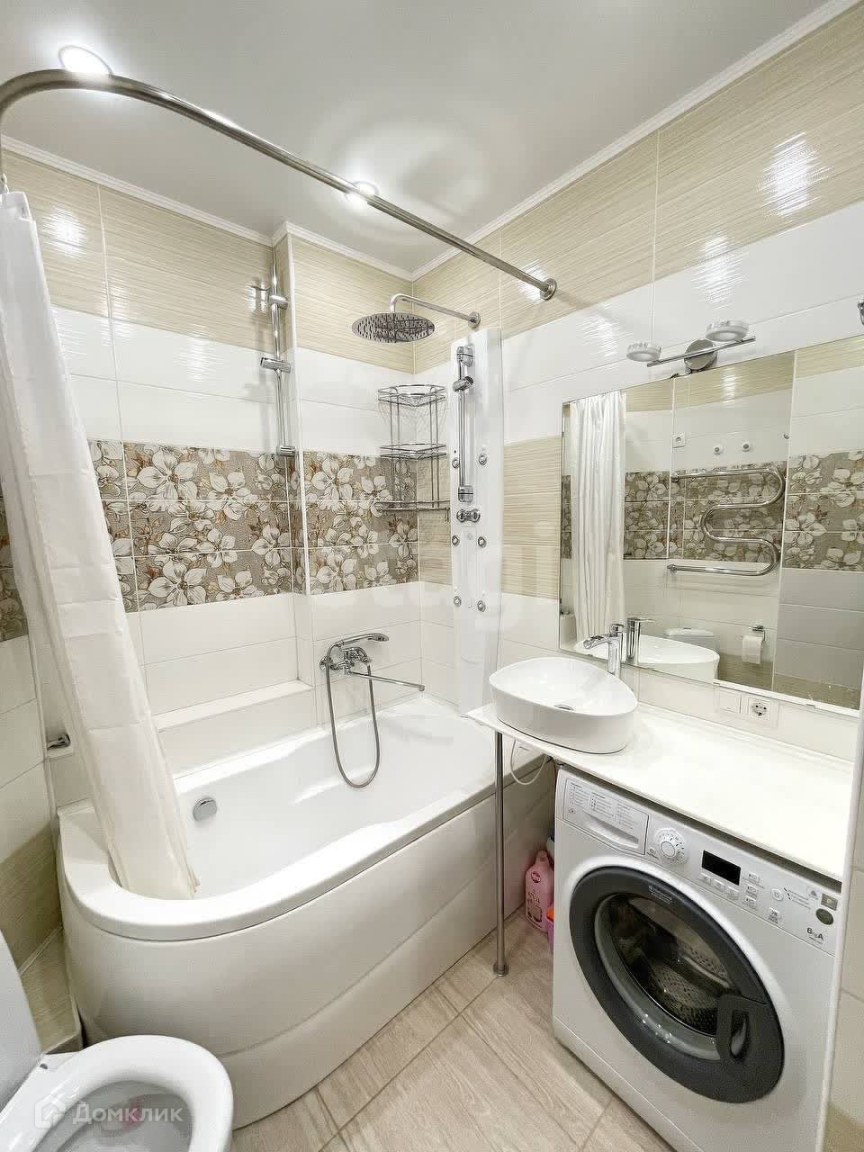 -в ванной комнате: стиральная машинка. В ванной комнате установлен тропический душ и панель для микромассажа.