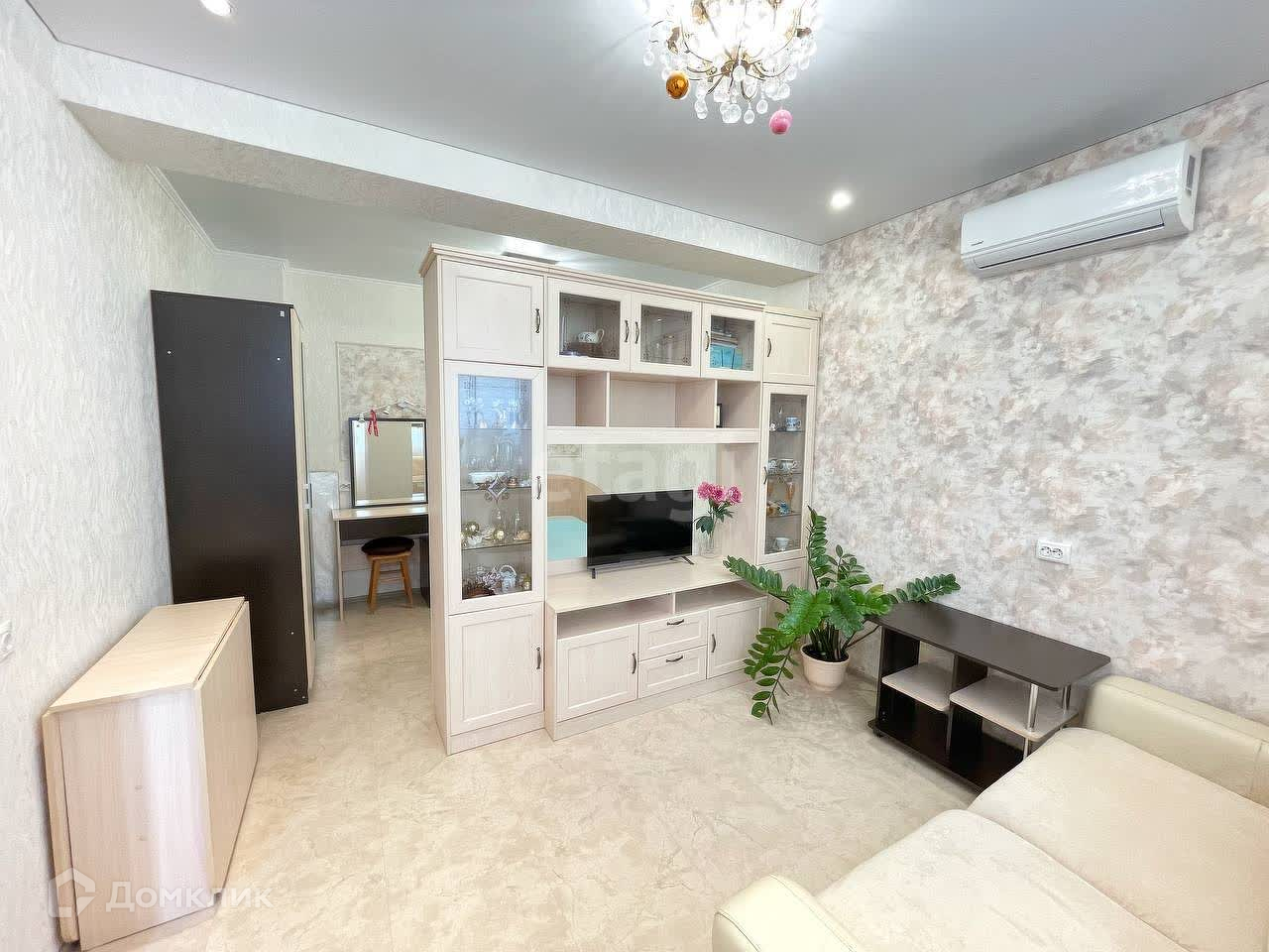 В квартире сделан свежий дорогостоящий ремонт. Входная дверь металлическая, потолок натяжной, на полу уложен кварцвинил , в санузле и ванной комнате кафель, установлена сантехника. Удобная планировка с большой кухней, в комнате есть отдельная зона спальни и гостиная с диваном. В квартире остается вся мебель и техника, а именно:
