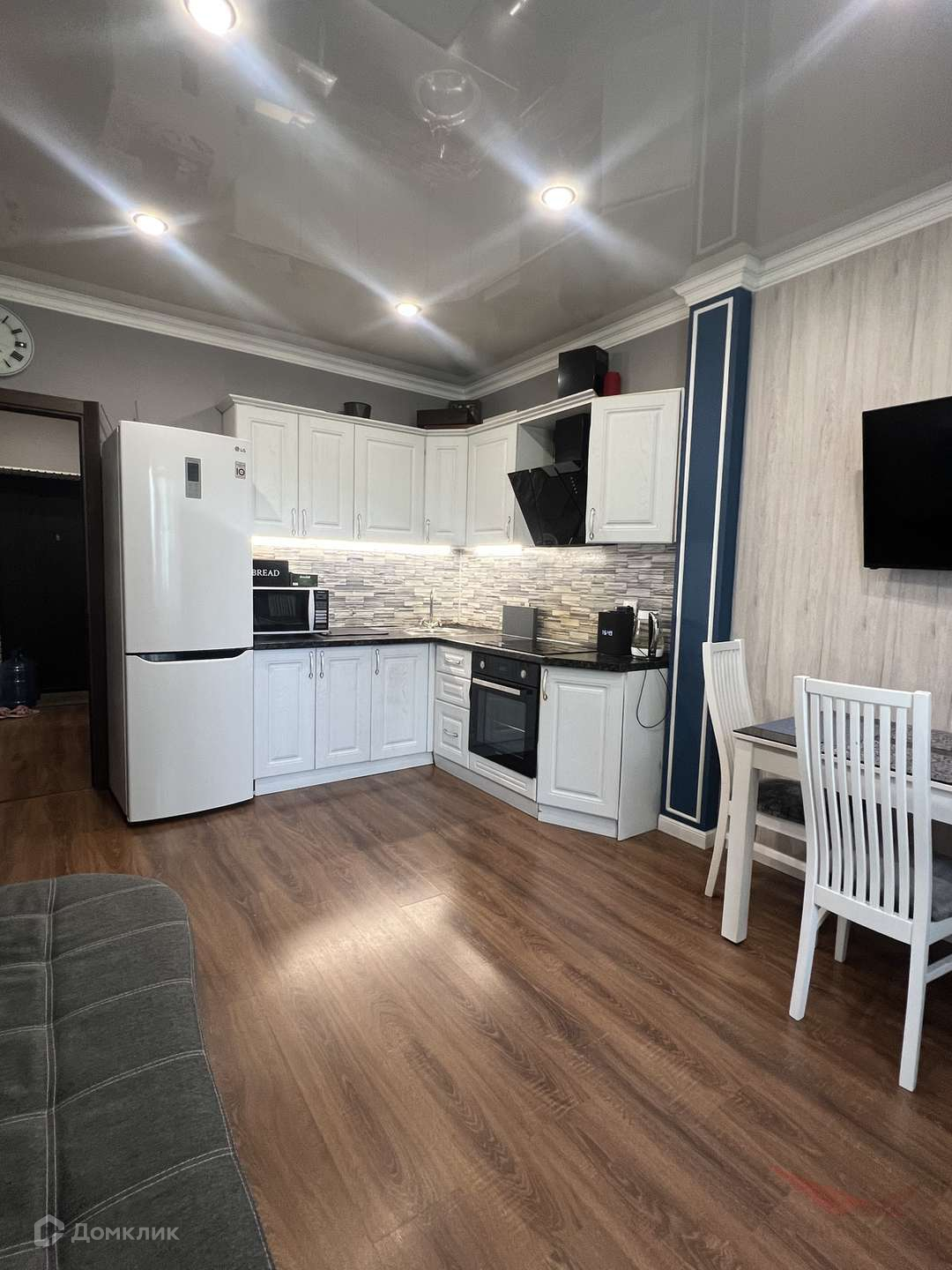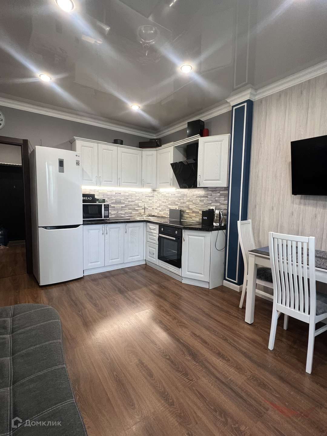 Для жизни все необходимое остается в квартире- встроенная кухня, оборудованная ванная комната, встроенный шкаф-купе, кондиционер, стол и стулья на кухне