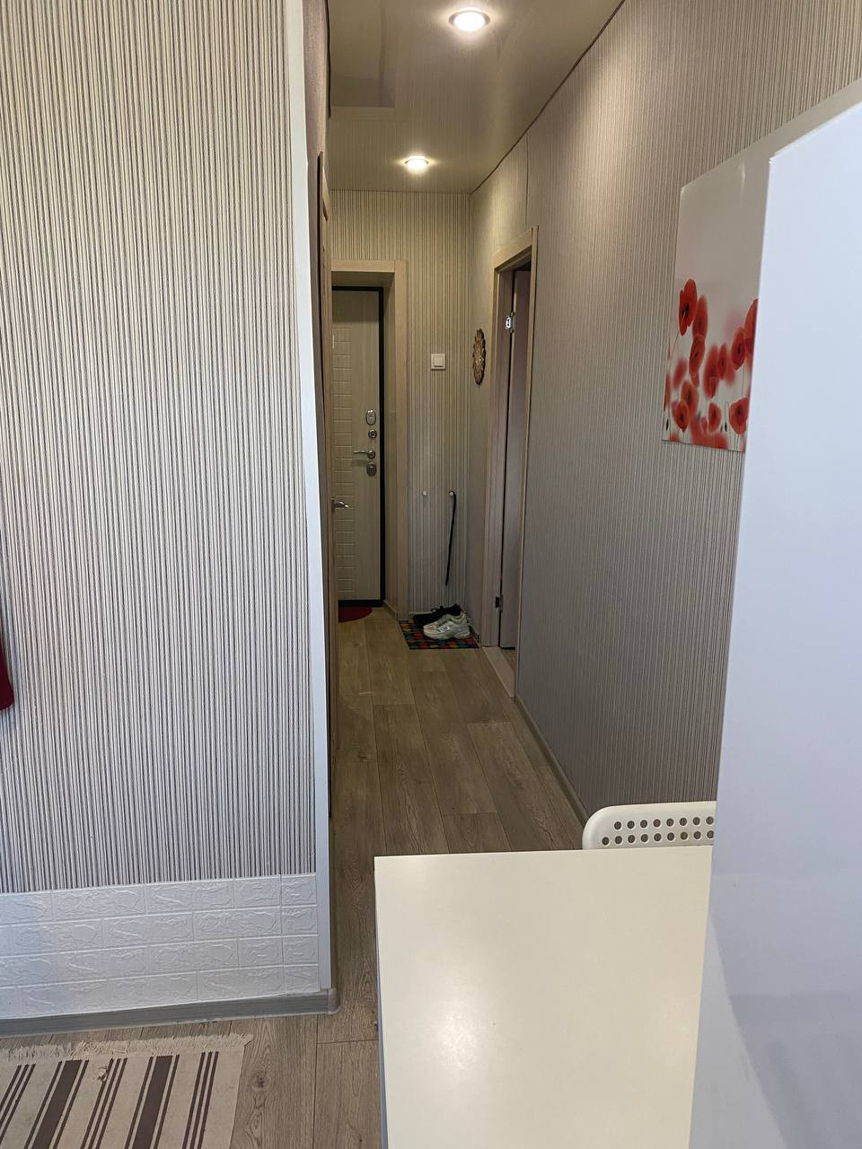 Продается уютная, чистая, теплая квартира в хорошем состоянии. Окна ПВХ, дорогие обои, натяжной потолок, линолеум, хорошие двери, замена труб. В квартире остается кухонный гарнитур, шкаф в коридоре, диван, кондиционер. Хорошее расположение дома, рядом парк, бассейн, магазины, остановка транспорта. Чистая продажа, 1 взр.собственник, без долгов и обременений. Небольшой торг.