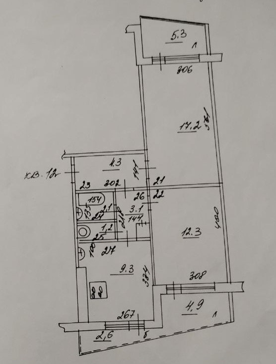 Кухня просторная -9,3 кв м , ( приобретена новая плита) Комнаты раздельные 17,2 + 12,3 кв м.