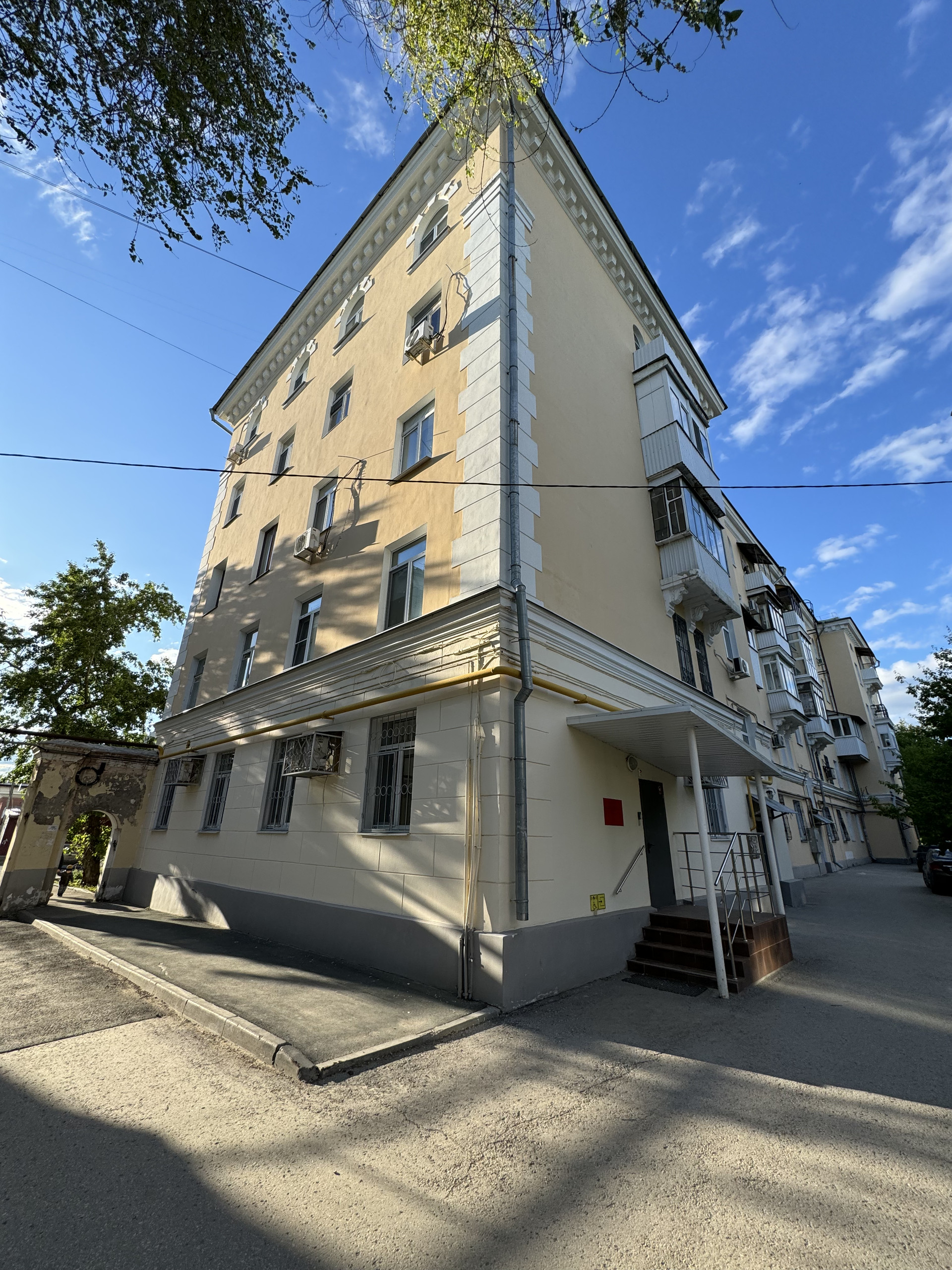 Просторный двор с большим количеством парковочных мест, заходя в который забываешь, что находишься в центре города.