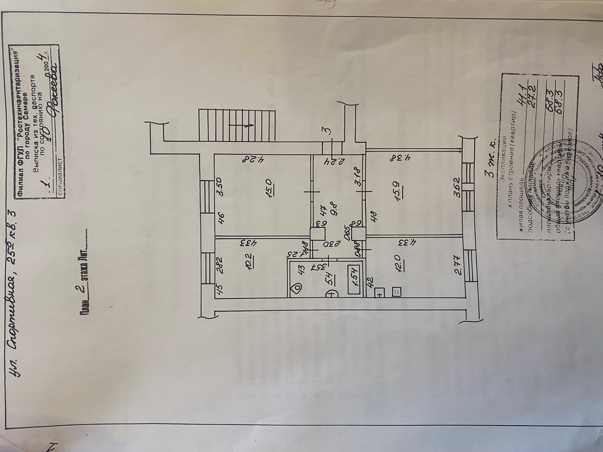 3-комнатная квартира, 68.3 м2, этаж 2 / 5, на продажу в Самаре, Спортивная улица, 25Б