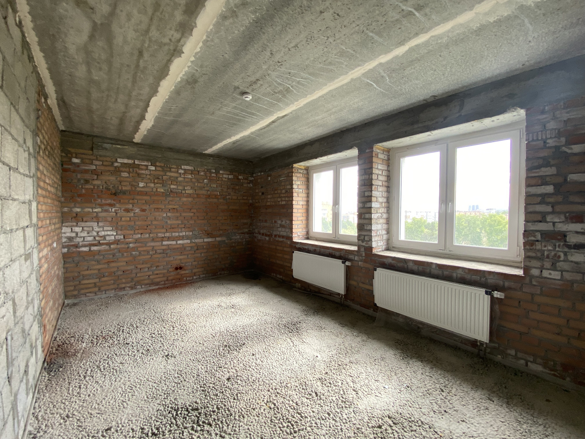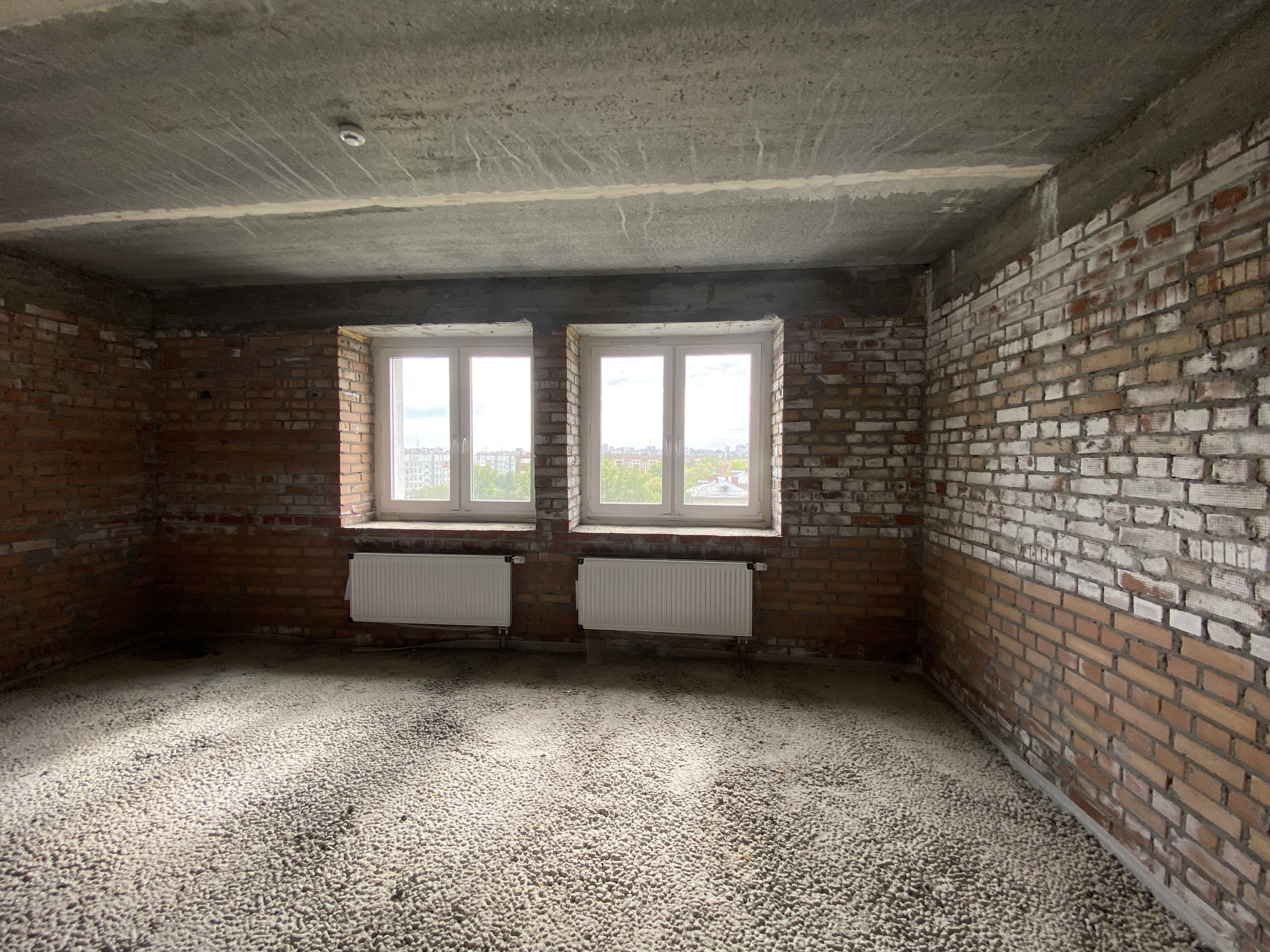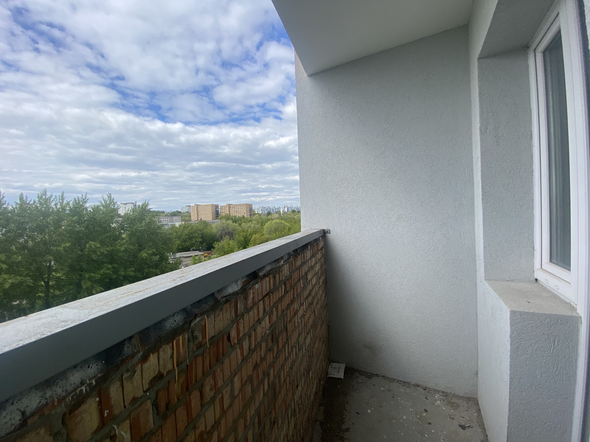 Продаётся видовая однокомнатная квартира.  Квартира находится во второй секции (полностью была снесена и возведена заново) на 8 этаже 18-этажного кирпичного дома. По периметру квартиры все стены несущие, квартира очень тёплая. Черновая отделка. Оптимальная планировка. Окна выходят на юго-запад (солнечная сторона), на школьную спортивную площадку. Лучший панорамный вид из этого дома на город. Наиболее удалённая секция от шума дорог, трамваев и громкой трансформаторной будки! В доме имеются два лифта – грузовой и пассажирский. Рядом школа, детские сады, магазины, рынок.