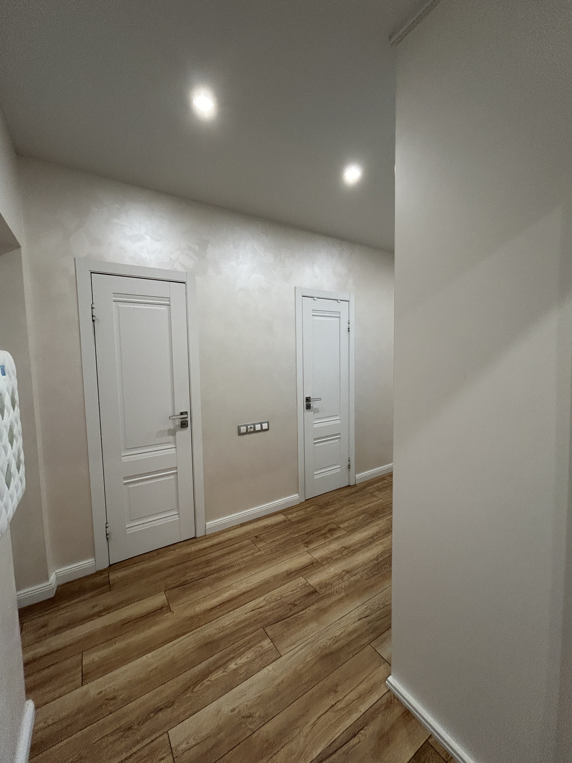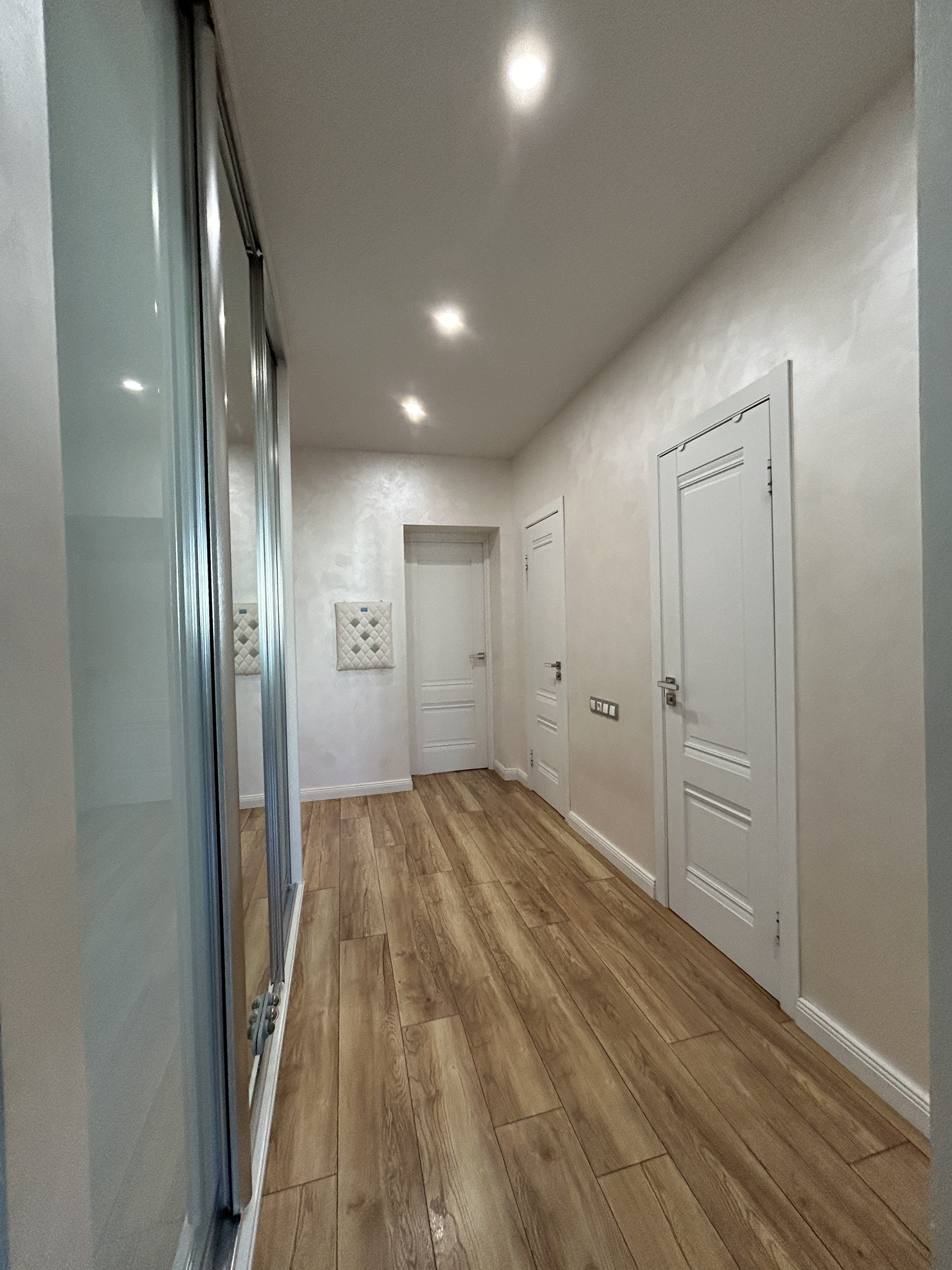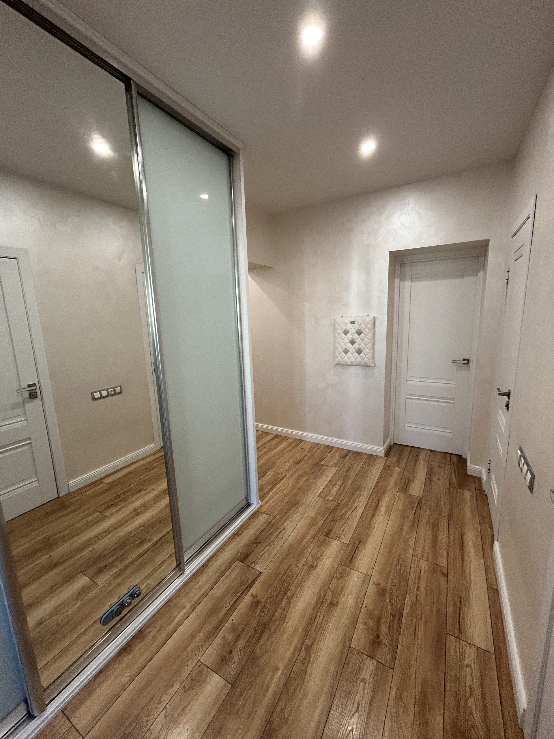 Просторный коридор с большим шкафом купе.