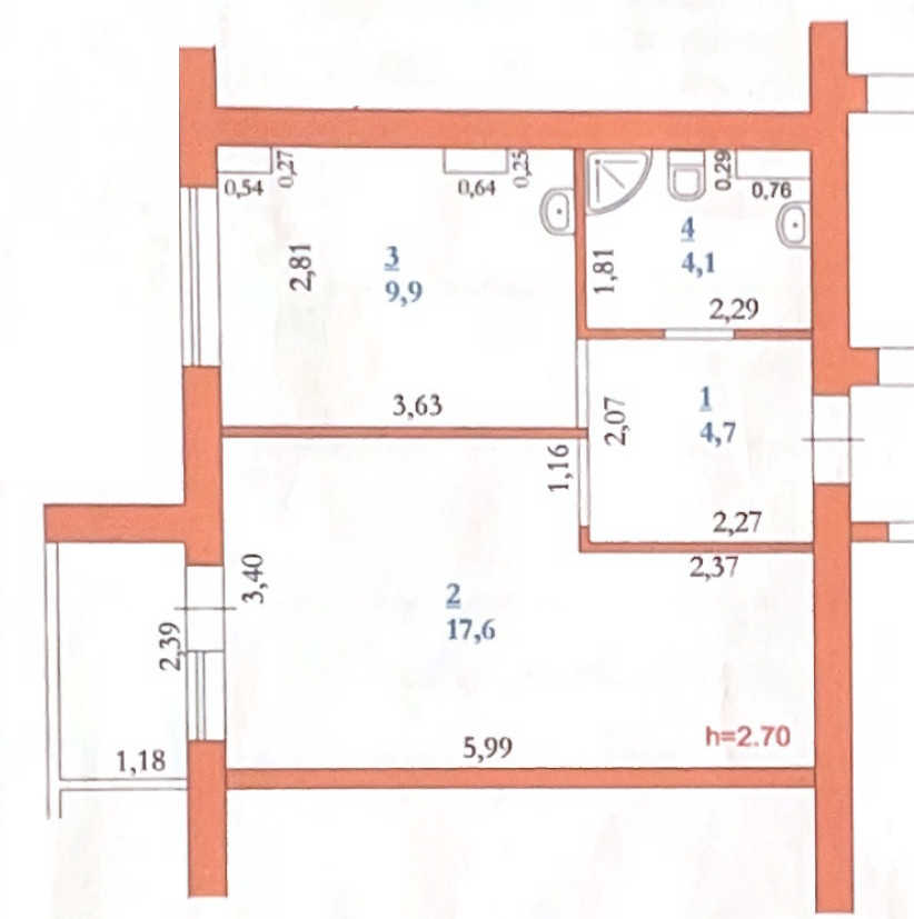 Высота потолков 2.7 м