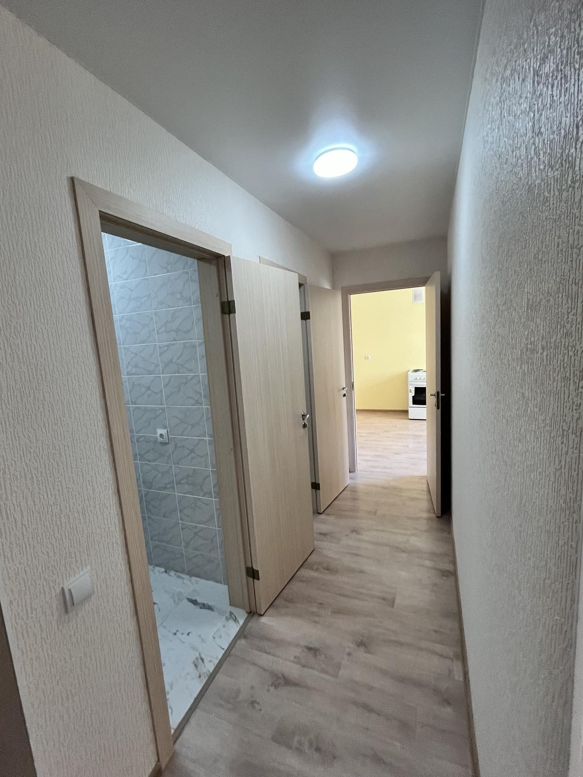 Стены выровненные, стяжка пола, натяжные потолки