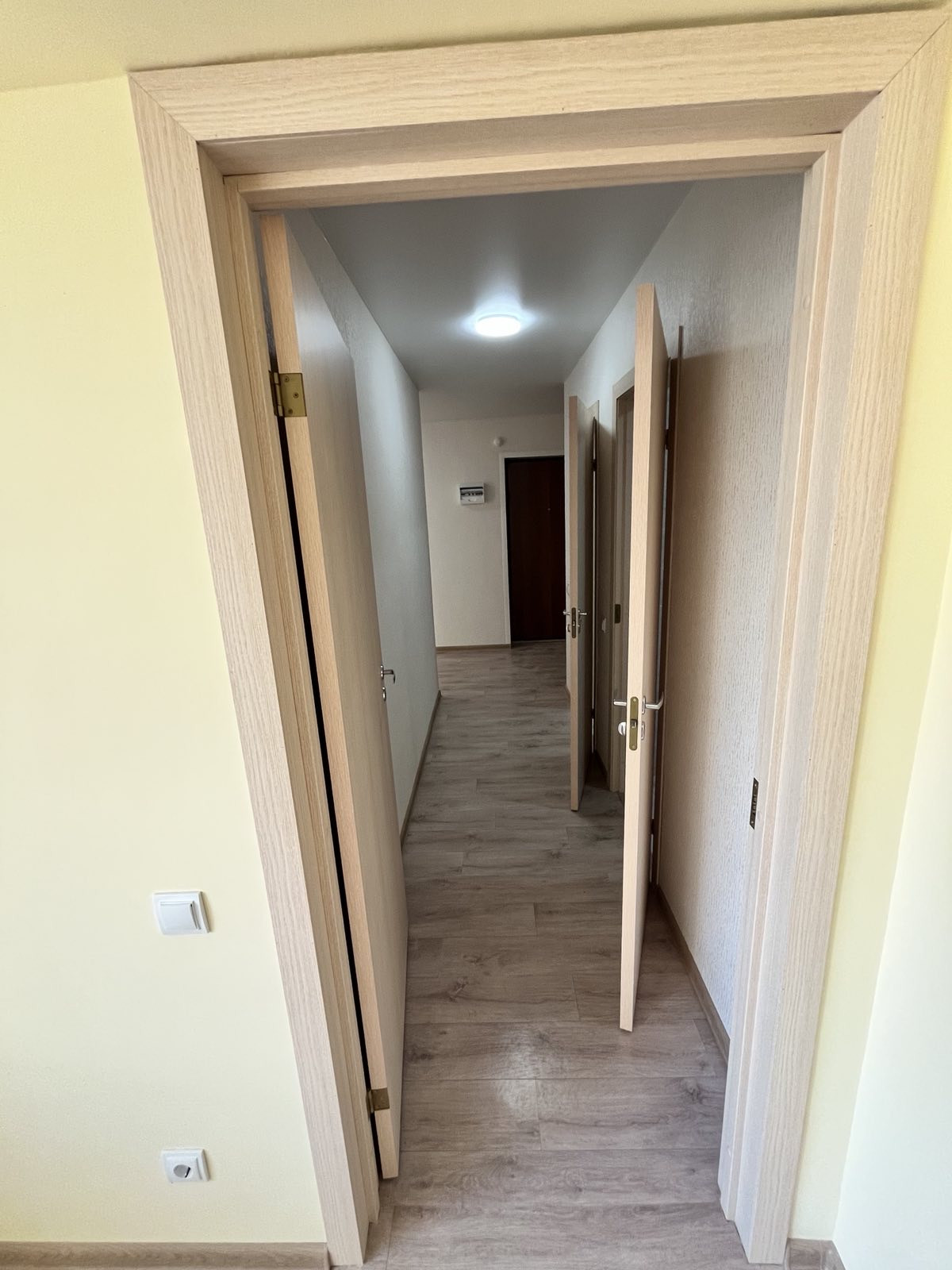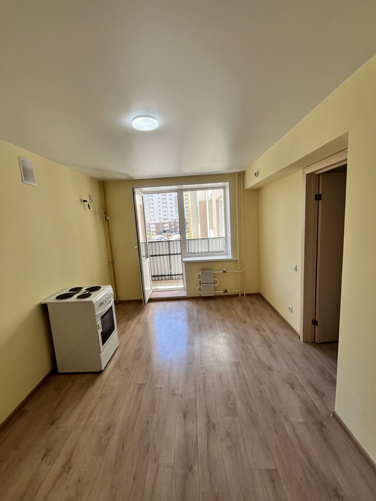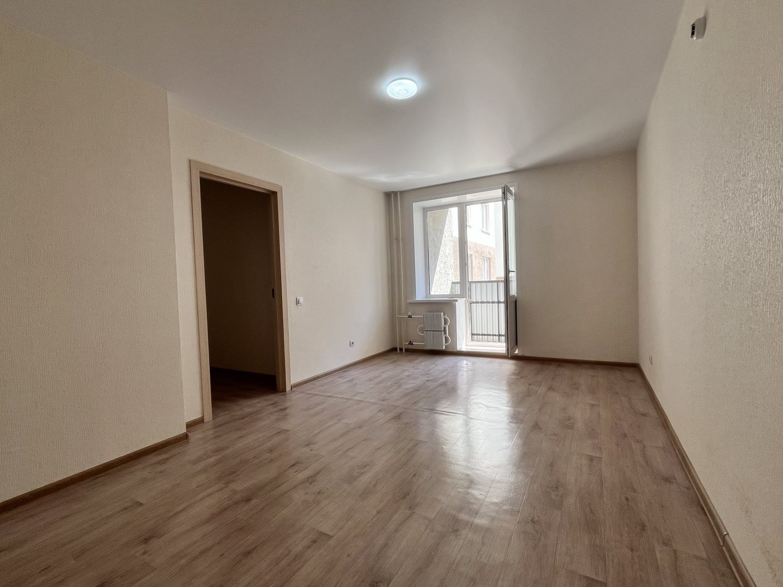 Линолеум, обои, межкомнатные двери - все в нейтральной светлой гамме